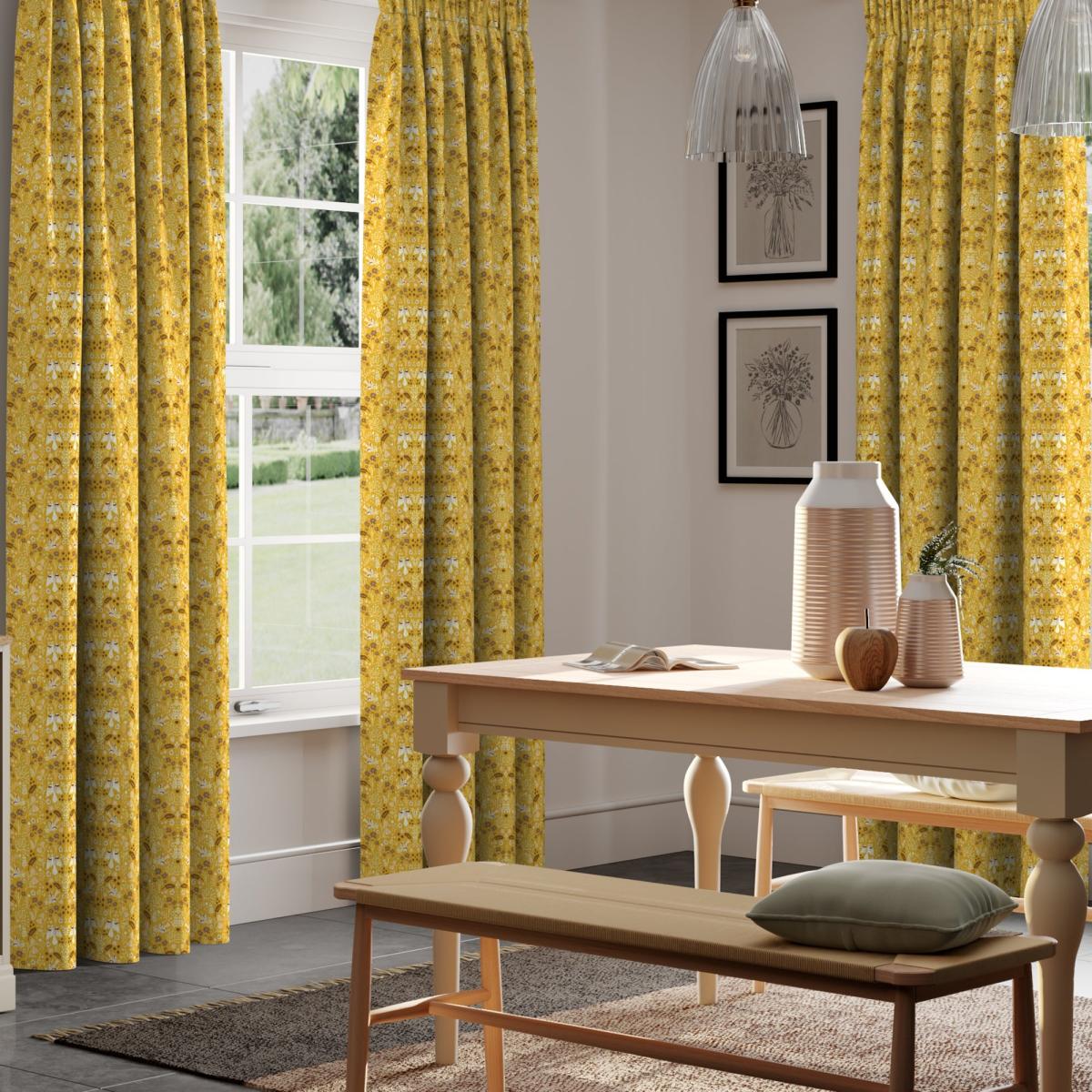 I love this yellow curtain for its bold yet versatile colour. It works particularly well in both traditional and contemporary interiors that embrace colour and pattern. Pair it with neutral walls and simple furnishings to let the fabric truly stand out, or mix it with other patterns for a lively, eclectic look. Practical styling tips include opting for a plain, shear curtain underneath for privacy and light control without detracting from the print. The Made to Measure aspect means you can tailor the length for a flawless fit, enhancing the overall cosy yet sophisticated feel of a room.