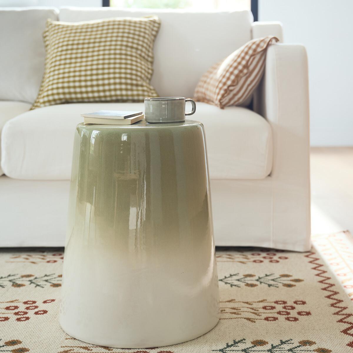 Fome side table: durable and attractive. Its reactive enamel coating produces unique prints and colours... A distinctive style that blends perfectly with your interiors. Fome, ideal as occasional furniture. Designed by La Redoute Interiors. Product Details • 100% ceramic with reactive glaze • Each piece is unique, colours may vary from one product to another • Felt pads on feet. Dimensions • Diameter 34cm • Height: 45cm • Weight: 8.5kg. Dimensions and weight of parcel • 1 parcel • L45 x H54 x D45cm, 9.5kg