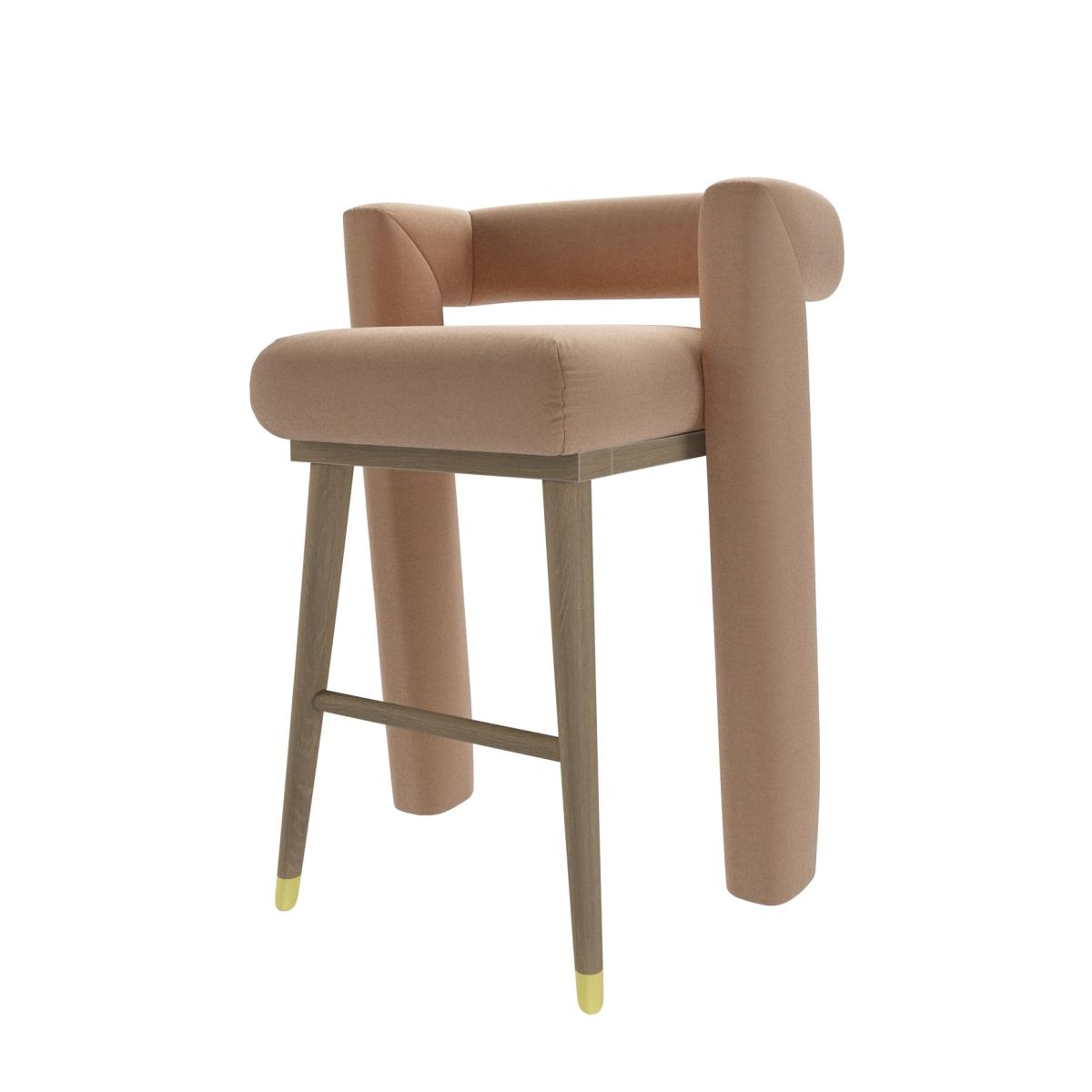 I love this bar stool because of its contemporary yet playful design, which pairs well with both minimalist kitchens and eclectic dining spaces. The Rosewater Organic Smart Cotton upholstery adds a soft, inviting touch, while the unique armrest detail makes it stand out as more than just seating. It works beautifully in interiors that blend modern comfort with subtle sophistication, especially in kitchens, home bars, or breakfast nooks. To style it effectively, consider pairing with natural wood or muted metal finishes for a cohesive look. For practicality, I’d suggest using it in casual settings or areas where the fabric can be easily cleaned, making it both stylish and functional.