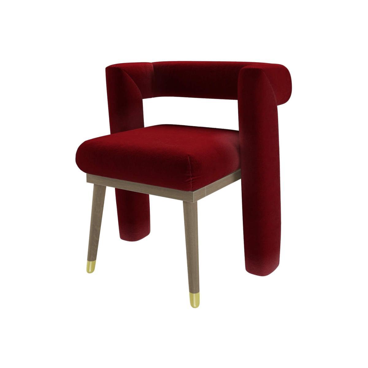 I love this chair for its bold use of colour and contemporary silhouette-it’s a real statement piece for any dining space. The rich claret tone in the velvet adds warmth and sophistication, working well in both modern and eclectic interiors. It's versatile enough to pair with neutral tabletops for a chic look or to complement other jewel tones for a layered aesthetic. Practical styling tips include mixing it with plainer chairs to let it stand out, or balancing its visual weight with softer textiles and light woods in the surrounding decor. Just keep in mind that the distinctive design makes it best suited to spaces where you want to introduce a touch of modern luxe, rather than a traditional or overly minimal setting.