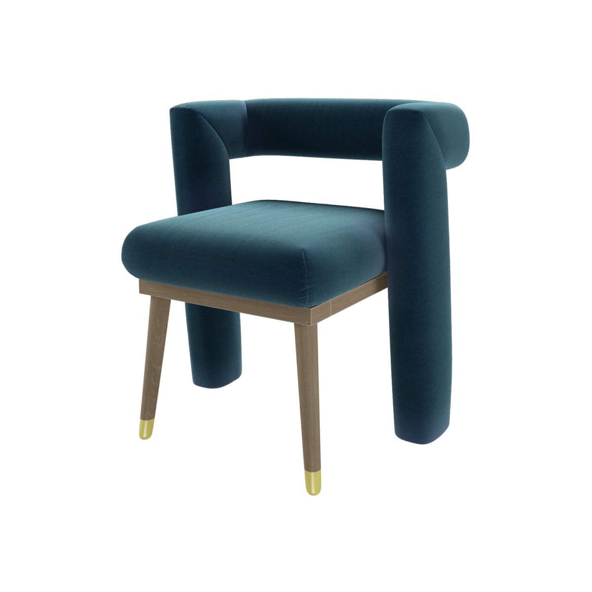 I really like this chair for bringing a contemporary touch to dining spaces-its bold shape and rich seaweed hue make it a statement piece that’s versatile enough to complement both modern and eclectic interiors. The smart cotton fabric is practical and easy to clean, making it ideal for everyday dining. It works particularly well in minimal or pared-back settings, where its sculptural form can be appreciated, but it also pairs beautifully with natural wood dining tables for a more relaxed, Scandinavian vibe. For styling tips, try mixing textures and adding colourful or patterned tableware to make the chair pop, or keep the surrounding palette neutral to let its distinctive design be the focal point.