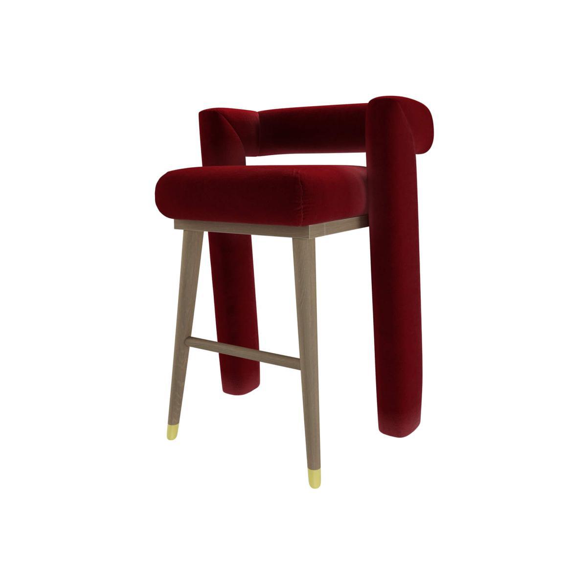 I love this barstool for its bold colour and contemporary design - the rich claret velvet adds a touch of luxury and makes it a real statement piece. It works brilliantly in eclectic, modern or Scandinavian interiors, especially where you want to introduce a pop of colour without overwhelming the room. Practical styling tips include pairing it with a sleek, minimalist bar or counter, and balancing the velvet finish with other textures like matte metals or wood in the space. To keep it looking its best, consider placing a small cushion on the seat for extra comfort, and avoid placing it in overly humid environments to maintain the fabric’s integrity. Overall, it’s a versatile piece that can elevate a casual kitchen nook or a stylish bar area effortlessly.