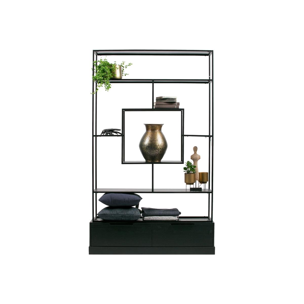 Aaaaayyyyy! You'll have nothing but happy days with the Fons Black Shelving Unit with Drawers from Woood to display your possessions. With its simple colour but funky design, the Fons will not only suit any interior but will also be a real eye-catcher. With seven shelves in various sizes plus two drawers at the base what you choose to use it for and where you place it is endless! Pop it in the living room, home office or as a room divider, with some trailing houseplants and your favourite books these shelves will be a welcome addition.
