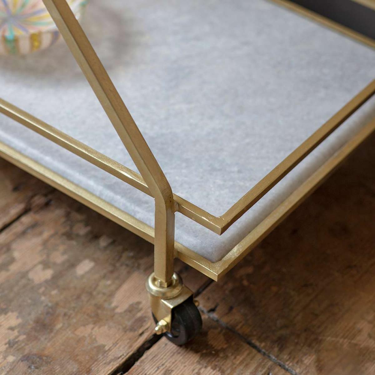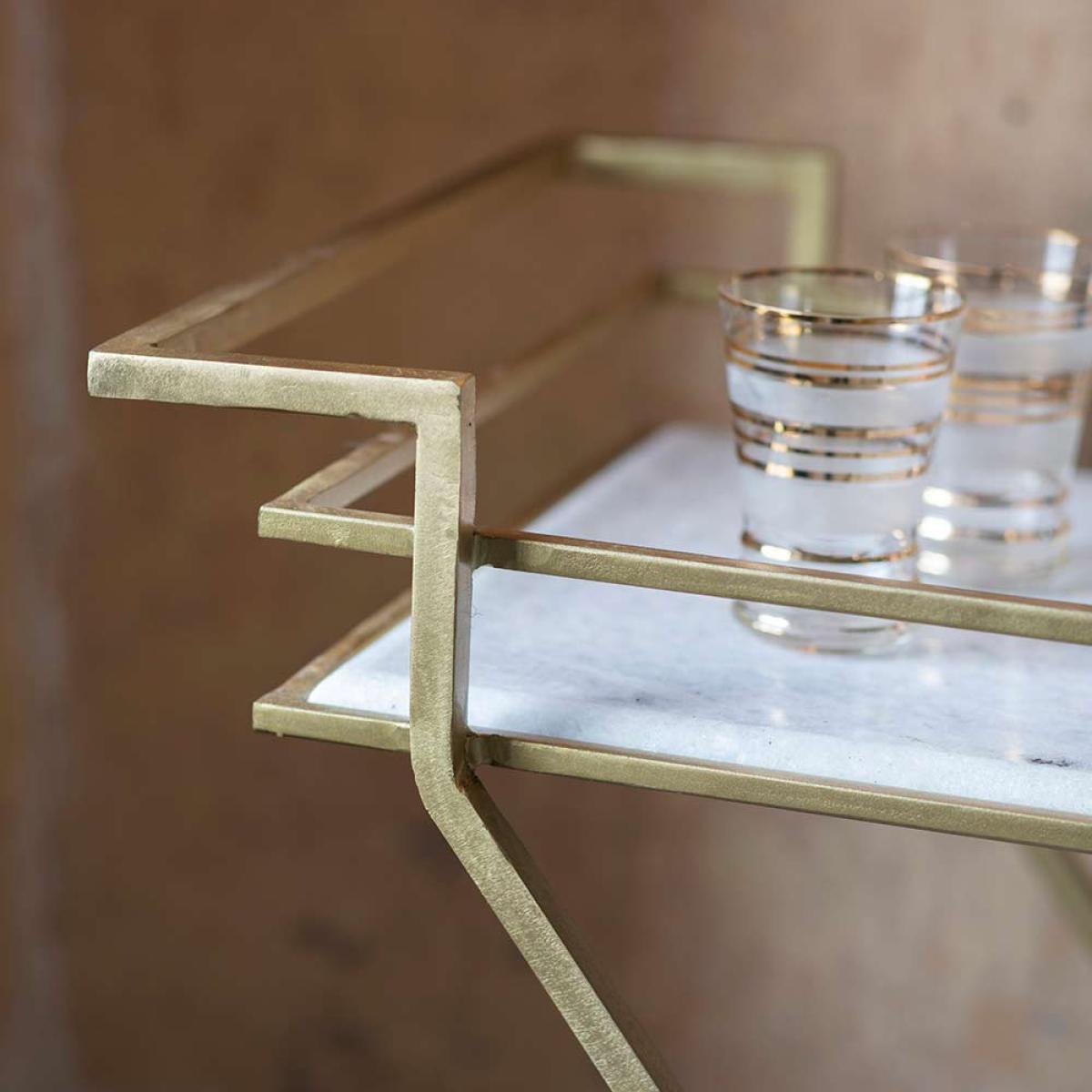 I’m a fan of this marble-top trolley for its blend of sleek white stone and warm brass-tone frame - it instantly lifts a living room or dining area without overwhelming the scheme. It sits equally well in a pared-back Scandi setting, a mid-century interior with sculptural accents or a more dramatic Art Deco look. For styling, keep the top shelf simple: a pair of crystal decanters or a neat selection of spirits paired with a small potted plant. The lower shelf can hold extra glassware or a stack of bar-ready books. Because it’s on wheels, you can easily move it from the kitchen to the sofa for effortless entertaining.
