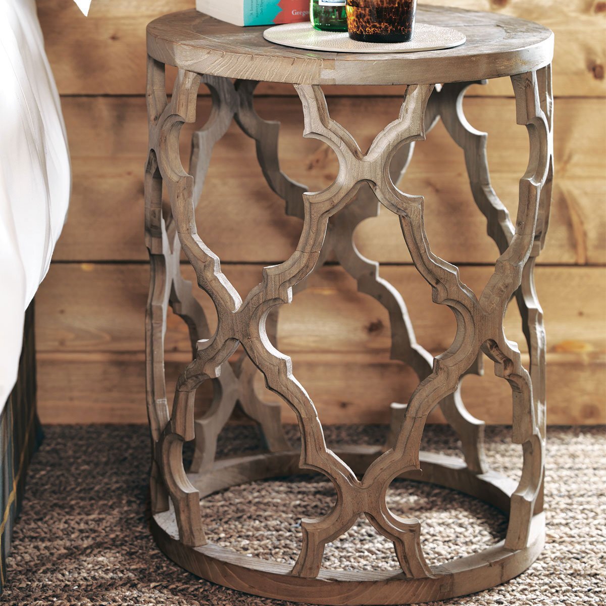 A round side table, expertly crafted from recycled elm for a vintage finish. The ornate lattice pattern around the sides elevates our Fontana Side Table from simple to striking, while the wood's rustic finish works well in less formal schemes too. Fontana Side Table - Recycled Elm