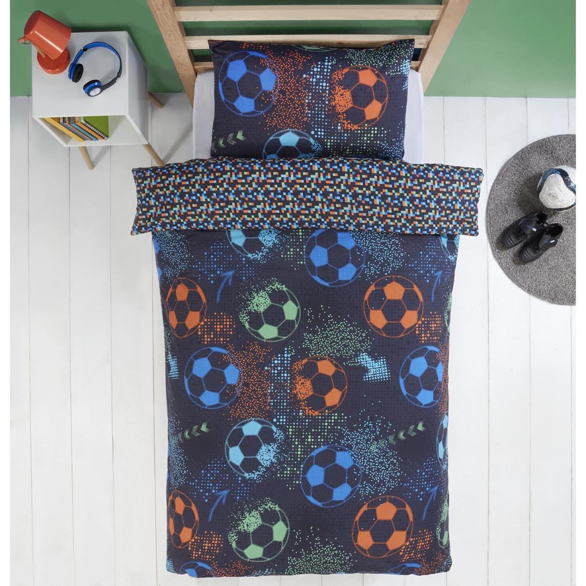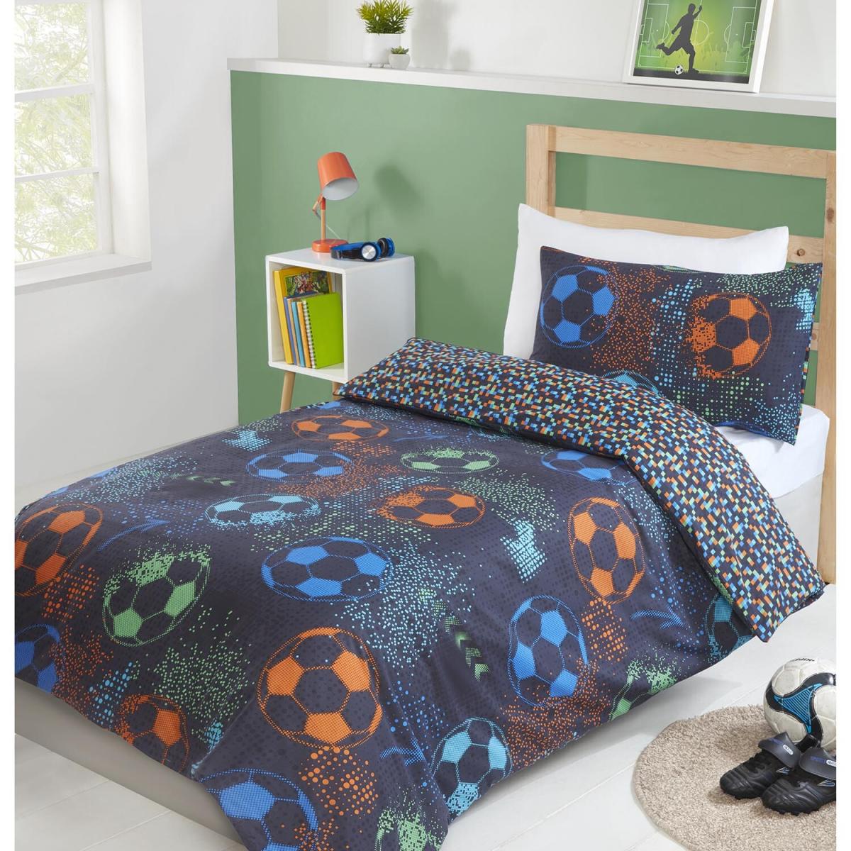 Excellent for young football fans, whatever team they support, this Football Duvet Cover and Pillowcase Set is sure to be a hit. Featuring a fun neon print on one side and a variety of footballs on the other, this reversible duvet cover allows your youngsters to switch up their style.