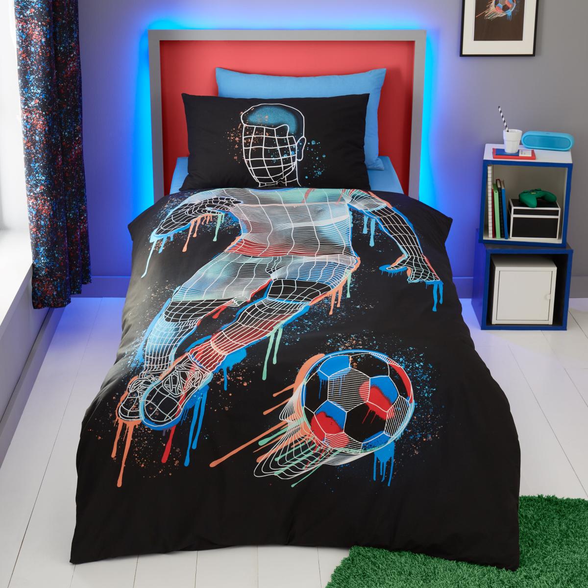 Football Graphic Boys Single Duvet Cover and Pillowcase Set Black