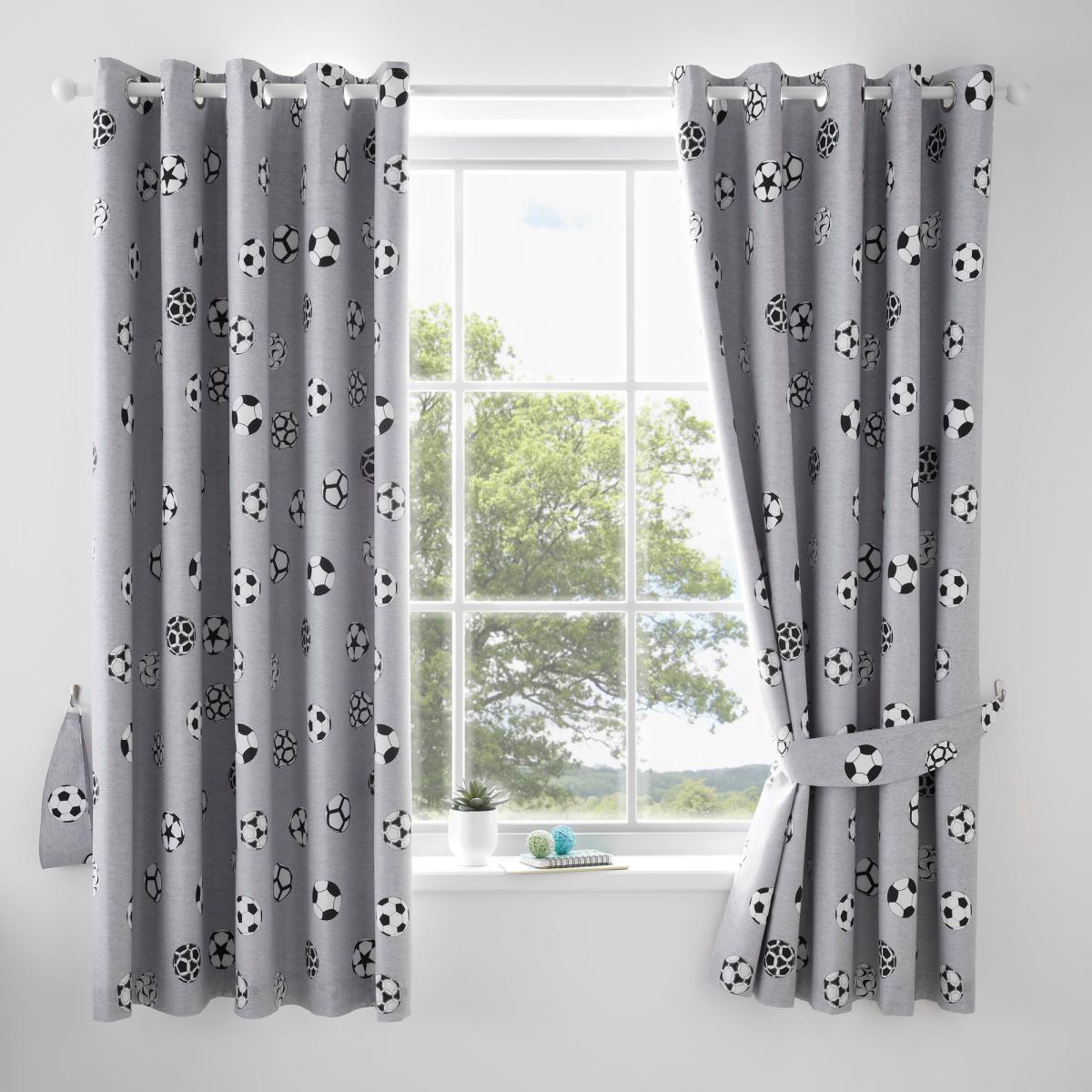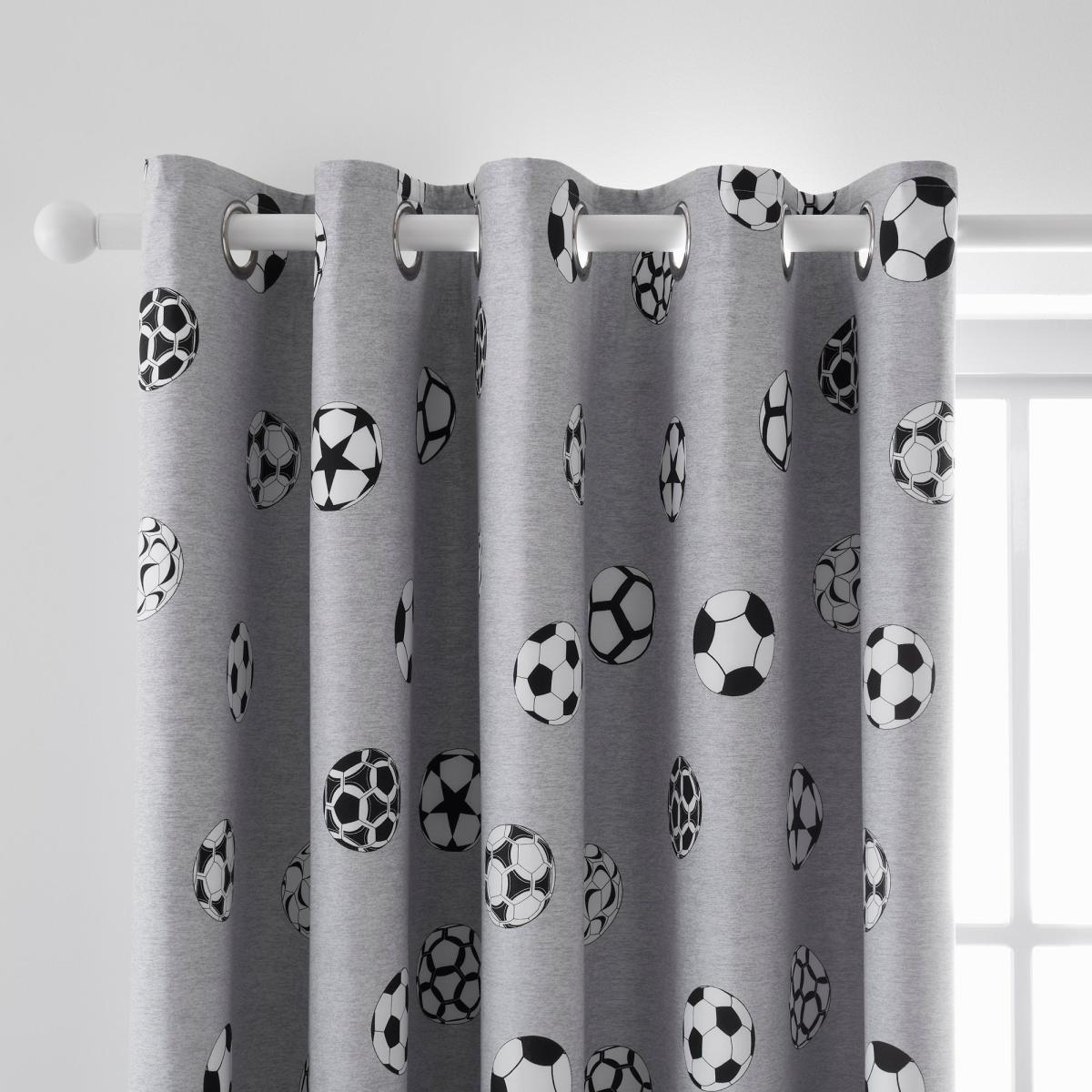 Football Grey and White Blackout Eyelet Curtains MultiColoured