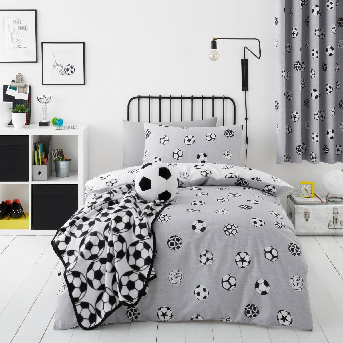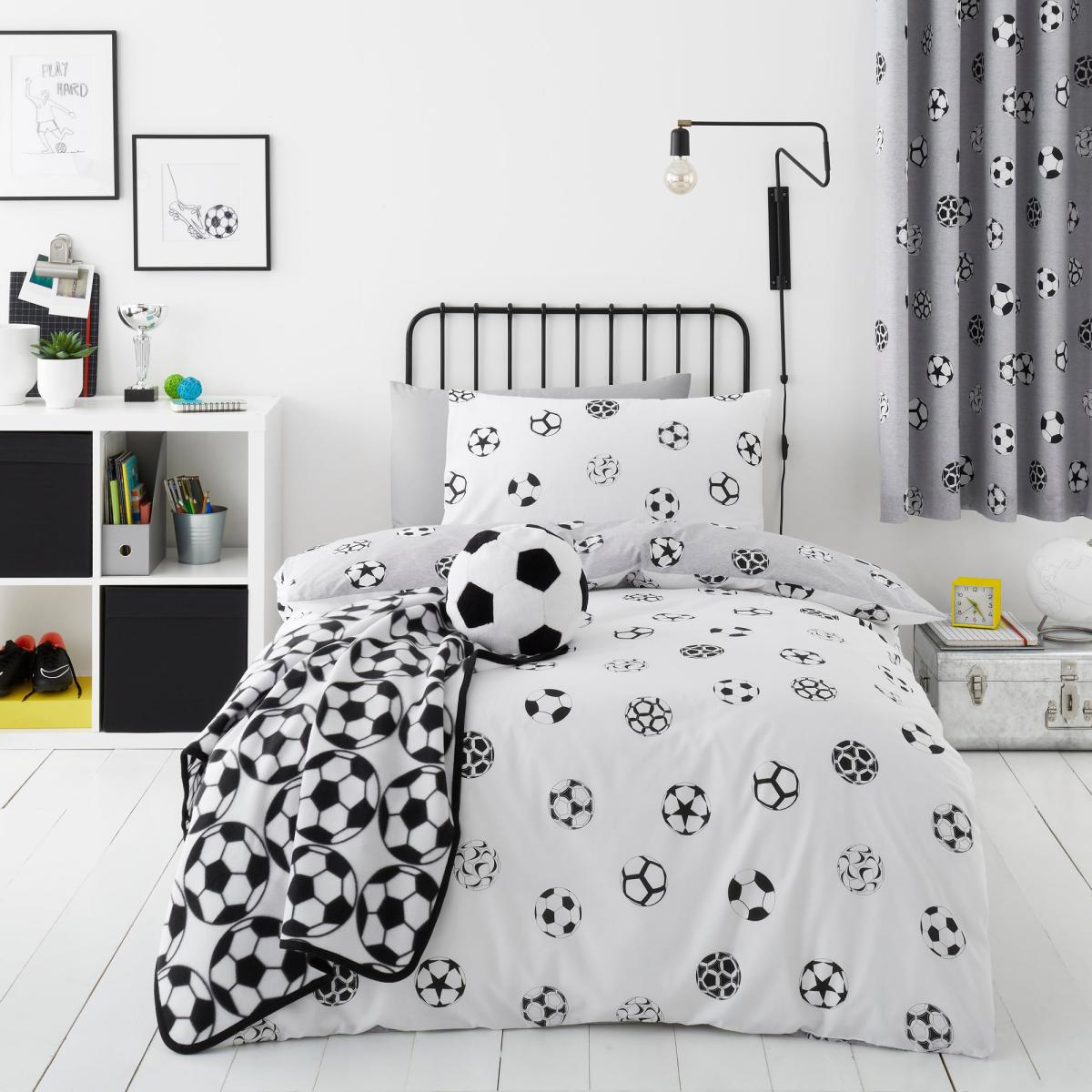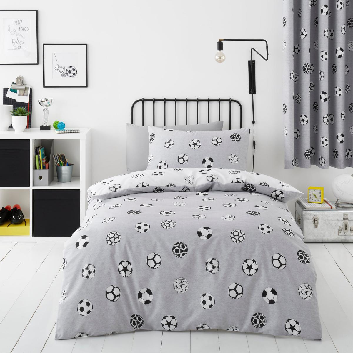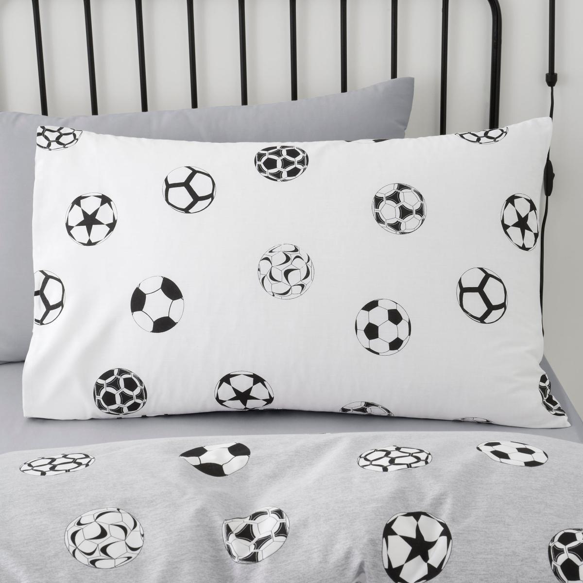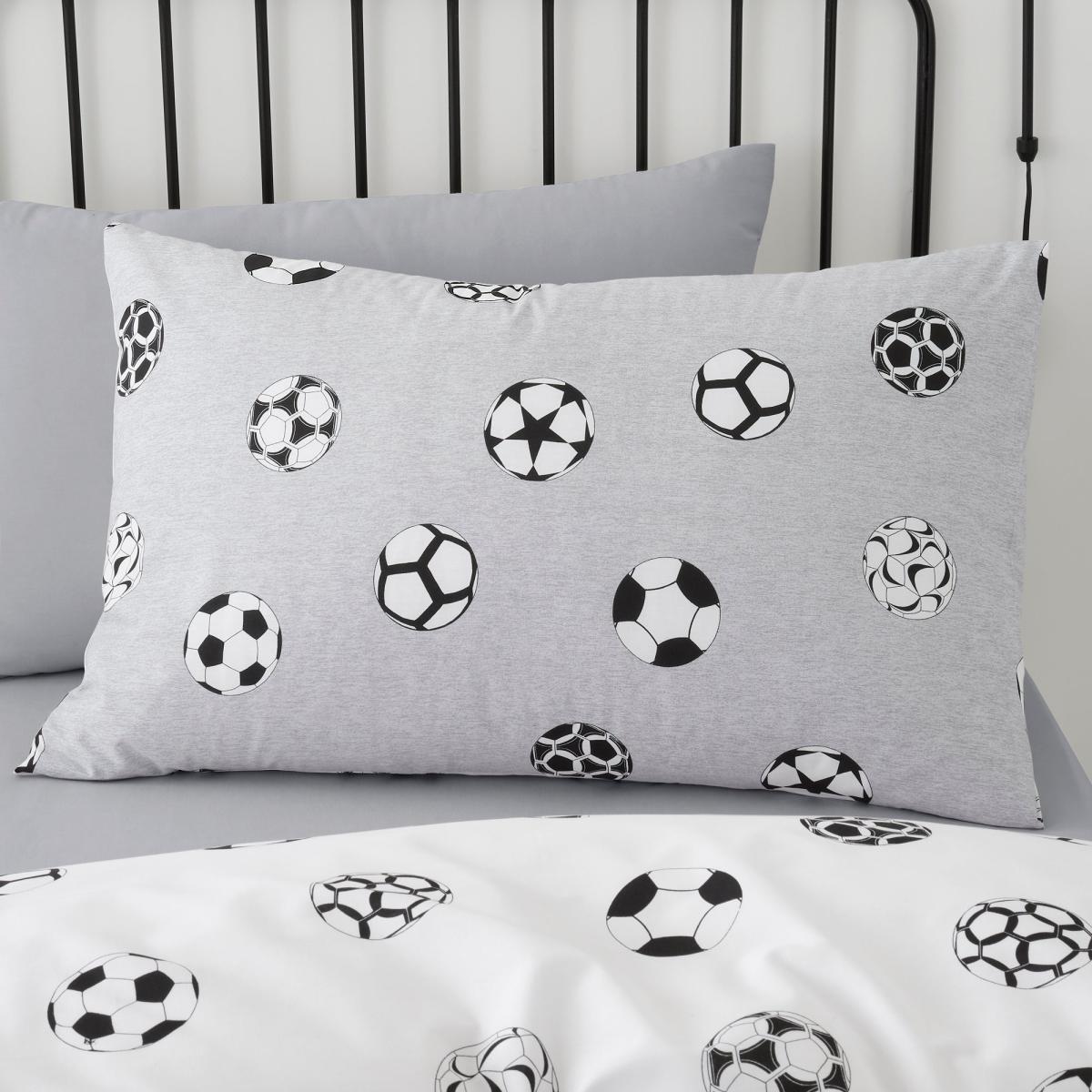 Perfect for football lovers, this reversible football bedding set has two fun and sporty designs your child can choose from. In a grey and white colourway, this bedding set would compliment any bedroom beautifully. Crafted from polycotton this bedding is soft, durable, and machine washable. Other coordinating bedding accessories are also available. This collection is verified by OEKO-TEX® and independently tested for harmful substances as well as manufactured using sustainable processes under socially responsible working conditions. MADE IN GREEN by OEKO-TEX® is a unique product label to trace the countries and production facilities - search the product label for more information.