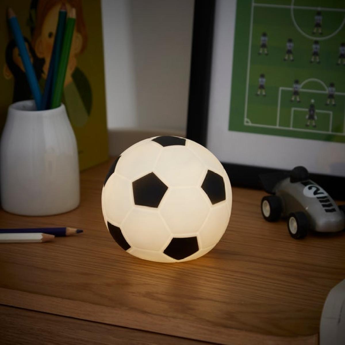 * Football Shape & Design * Emits Warm, Cosy Glow * Requires 2 x AAA Batteries (Not Required) Score big on bedtime comfort with the Football Night Light. Featuring a fun football-shaped design and a warm, gentle glow, it’s ideal for kids — especially young football fans — who want a soft light to ease into sleep.