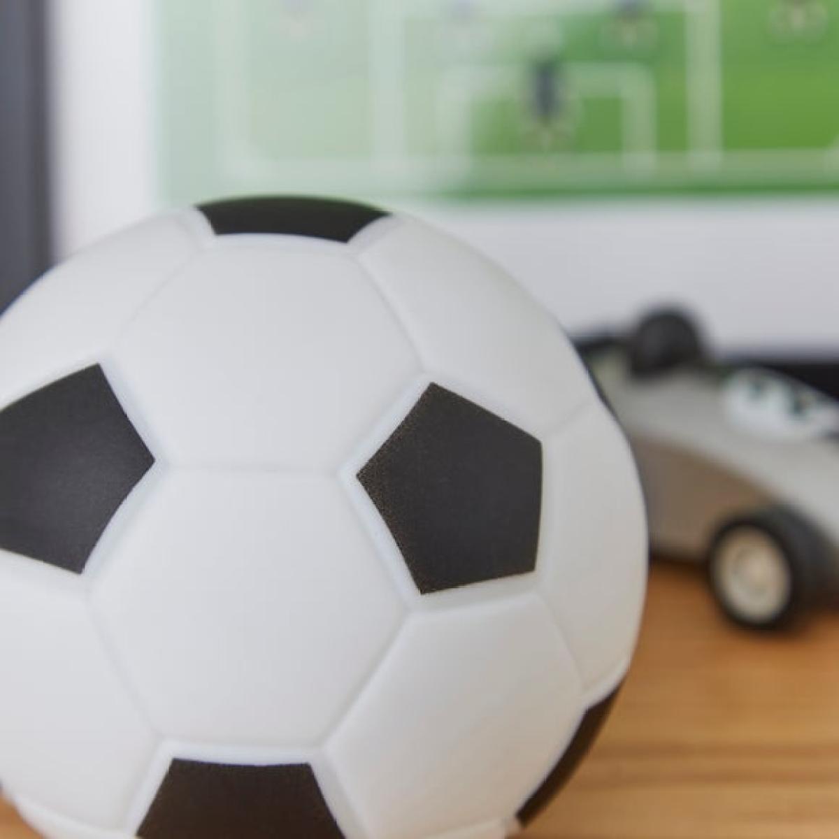 I love this football night light for adding a playful touch to a child's room, especially in sports-themed or gender-neutral interiors. It works well in boys' or girls' bedrooms, as well as playrooms where a fun, sporty vibe is desired. To style it effectively, consider pairing it with coloured accessories or bedding that match or complement its monochrome palette. Practical tips include placing it on a bedside table or desk for a fun, functional glow, while also ensuring it’s positioned away from small hands if it’s not a soft, cushioned design. Its simple design makes it versatile, so it can grow with the child and fit seamlessly into a variety of contemporary or classic interiors.