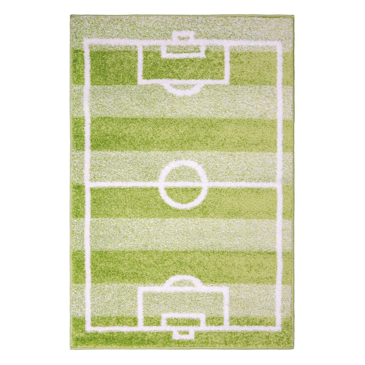 It’s playtime! The floor is a great place to play, so add some fun with our Football Pitch Rug. The playful Football Pitch design is ideal to spark your football-mad little ones imagination. The 100% polypropylene pile is super hardwearing and durable, made to cope with any amount of rough and tumble. A small amount of fibre loss is normal. Do not pull loose fibres, just trim with scissors. Safe for use with anti-slip backing on a heated floor. Use a suction type vacuum - rotating brushes may damage this rug. Re-roll your rug pile out for 24 hours to reduce curling. Regularly turn to ensure even wear. An anti-slip mat will help prevent slipping. Blot spills immediately with a clean, dry white cloth. Do not rub. Do not place this rug near an open fire. Please do not leave children or infants unattended.
