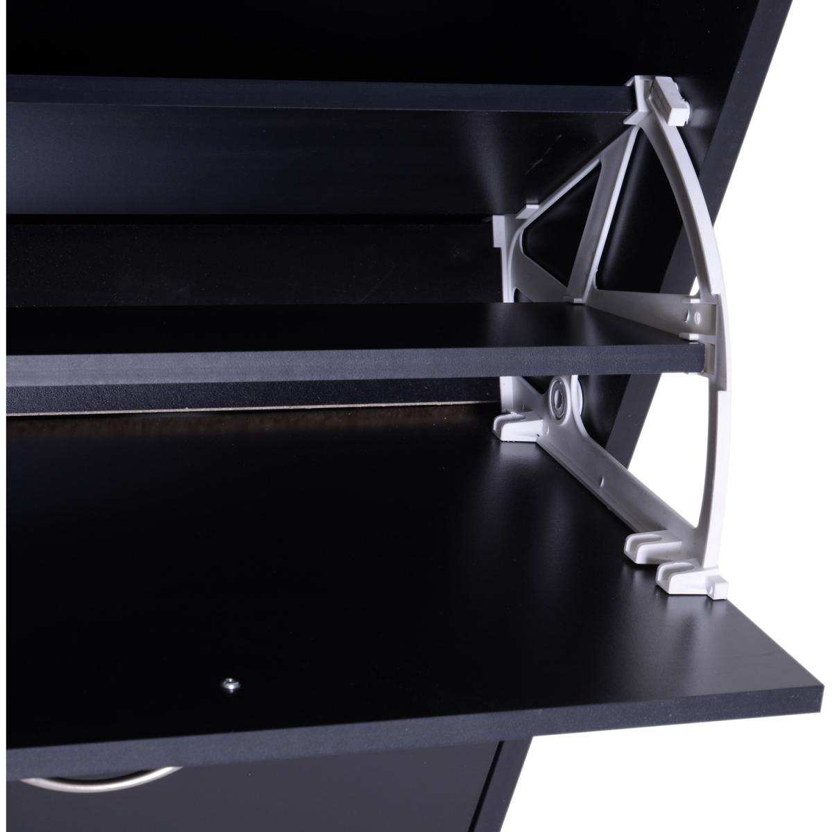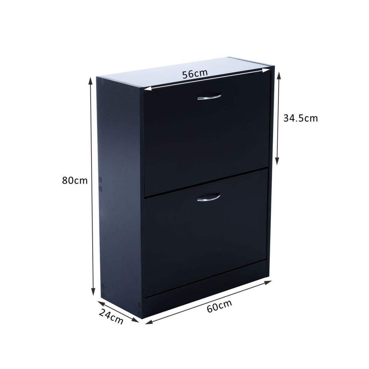 Too many shoes and worried about no place to store your favourite footwear. It's time to organize your shoes, boots, and high-heels now with our HOMCOM shoe cabinet. The stylish and modern look will fit any decor of your room. Constructed of particleboard, this tipping shoe organization is sturdy for reliable use and does no harm to the human body. Adjustable board in each tier allows efficient space use. Keep your shoes and accessories neatly tucked away within this spacious hall organizer.