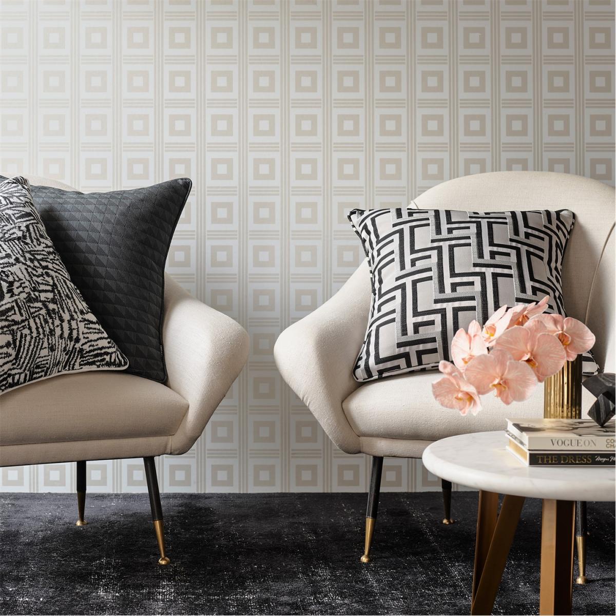 I really like the Forbes cushion for its bold geometric pattern, which adds a contemporary edge to sofas and armchairs. Its monochrome palette makes it versatile, working well in modern, minimalist, or monochrome interiors, but it can also be paired with coloured accents for a more eclectic look. Practical styling tips include layering it with textured or plain cushions to create depth, or using it as a statement piece on neutral backgrounds. Its square shape and striking design make it an excellent choice for injecting personality into both living rooms and bedrooms.
