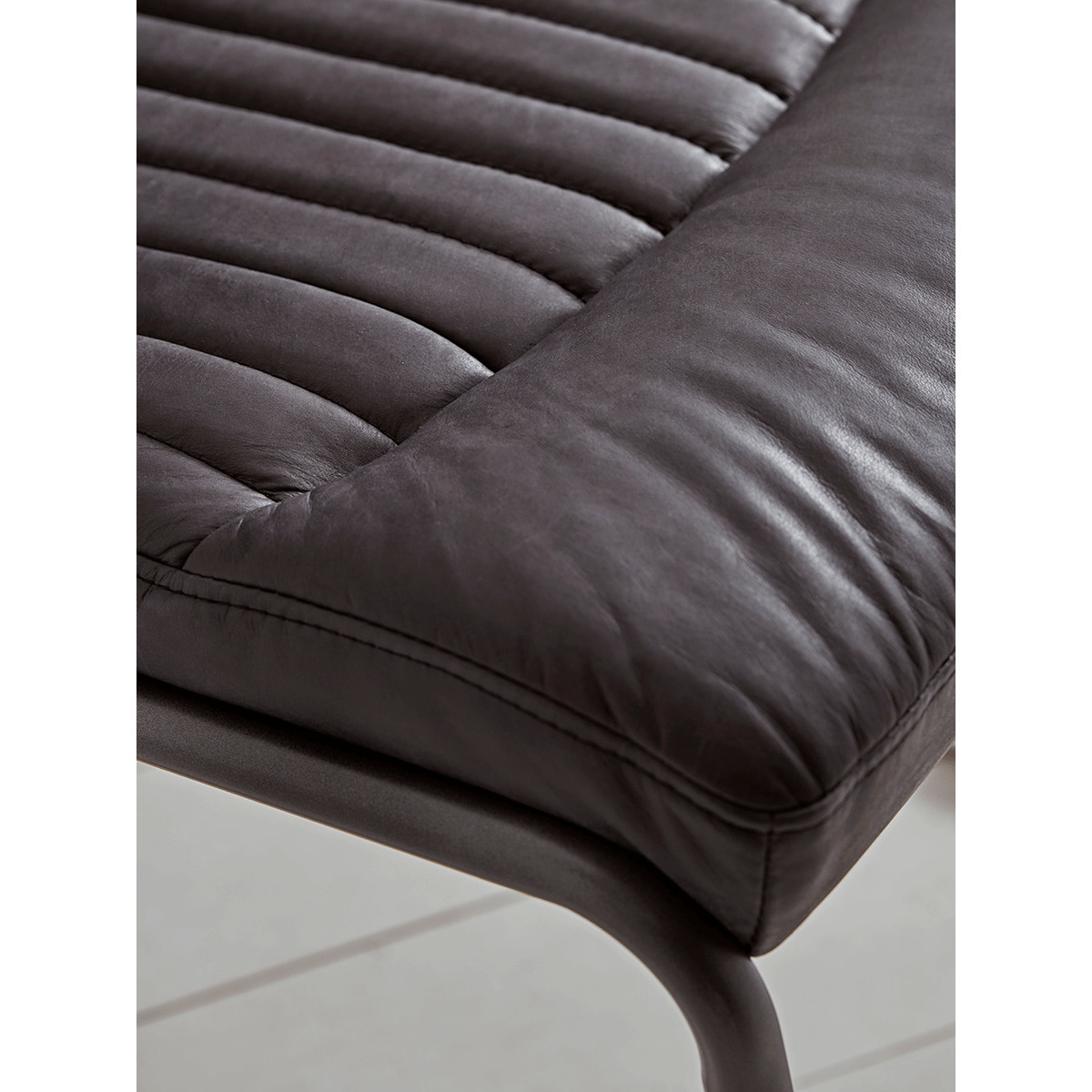 With a bold, iron frame upholstered in grey-black carbon, our factory loft inspired dining chair will bring a touch of Brooklyn style to your living and dining space. Each chair has a simple silhouette, with a ribbed upholstered seat and a comfortable, sloped backrest.
