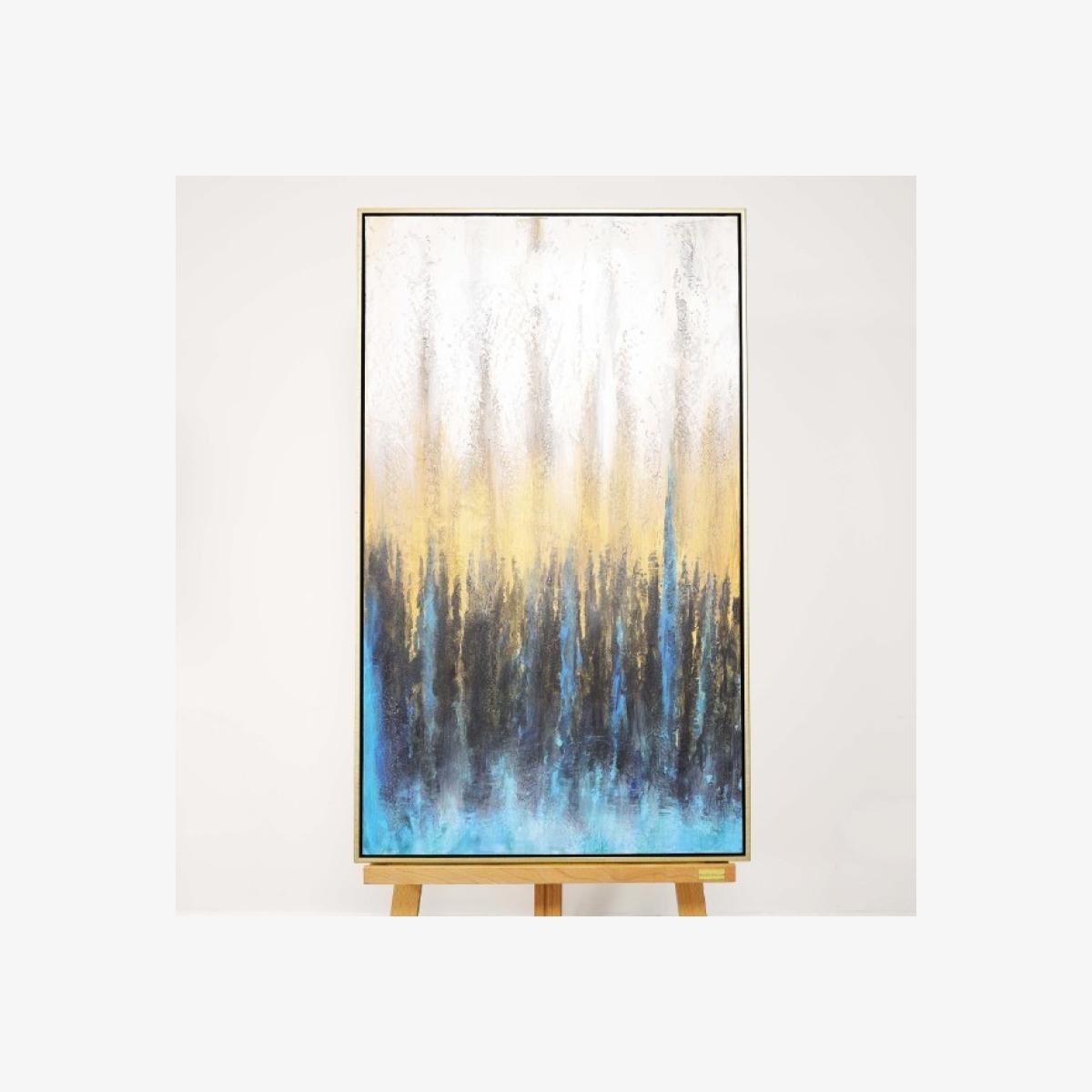 This piece, the forest abstract canvas with its gold frame, is a versatile artwork that brings a contemporary touch to various interiors. I love how the gold frame adds a hint of luxury while the abstract design offers visual interest without overwhelming the space. It’s particularly effective in modern, minimalist, or Scandinavian-style settings, where its subtle colour palette can complement neutral tones and natural textures. For styling, consider placing it above a console table or in a living area where it can act as a focal point. Pair it with other understated décor or metallic accents to create a cohesive look, and ensure it’s hung at eye level for maximum impact. Its size makes it adaptable for both larger walls and more intimate spaces.