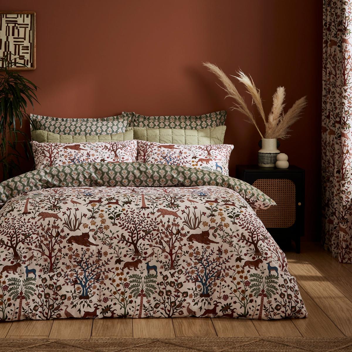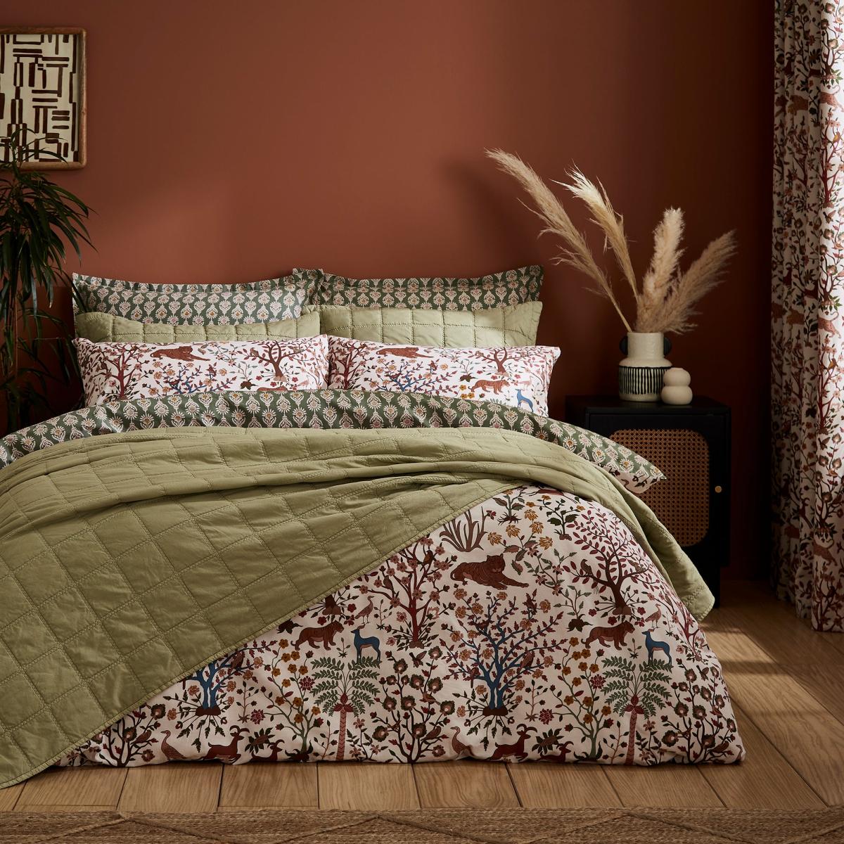 * 100% Cotton composition* Modern, quilted design* Button closure* Machine washable* Corresponding items sold separately Bring the enchanting charm of nature into your bedroom with our Forest Animals collection. Inspired by whimsical folktales and the beauty of wildlife, the reversible printed design offers a range of styling options. Woven from 100% cotton, this bedding is naturally soft, breathable, and comfortably smooth, perfect for year-round use. The set includes a duvet cover and pillowcase with a button closure, and coordinating items are available. This collection is verified by OEKO-TEX and independently tested for harmful substances as well as manufactured using sustainable processes under socially responsible working conditions. MADE IN GREEN by OEKO-TEX is a unique product label to trace the countries and production facilities - search the product label for more information.