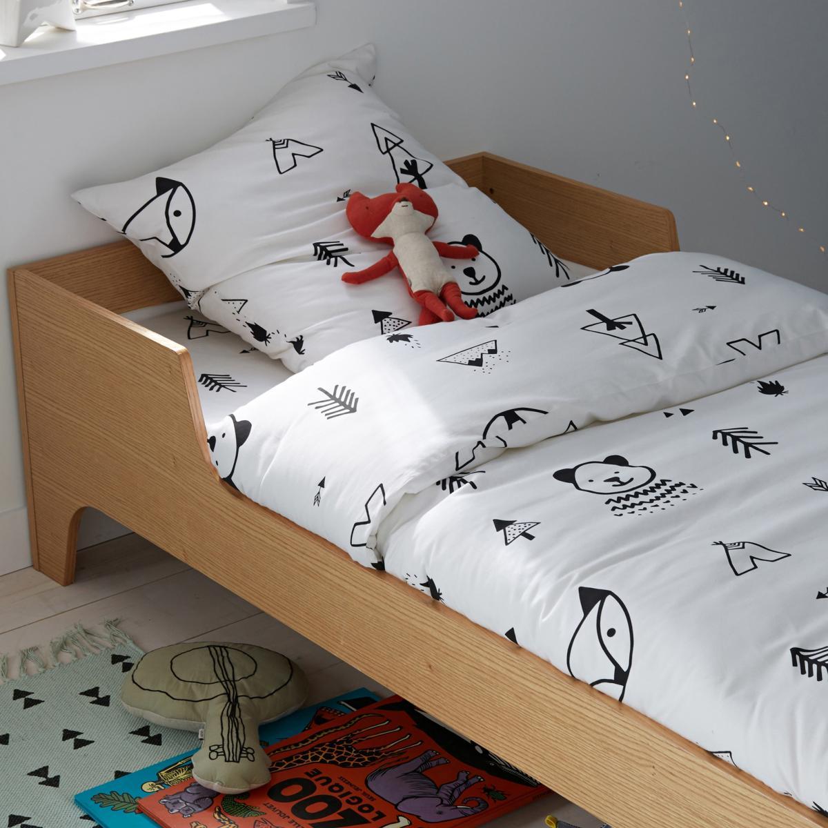 I love this forest camp sheet for its playful yet versatile design, perfect for adding a touch of nature-inspired charm to a child's bedroom. Its monochrome print keeps it from overwhelming a space, making it suitable for both modern and traditional interiors. This sheet works particularly well layered with cosy, earthy-toned bedding or complemented with woodland-themed accessories. Practical styling tips include pairing it with neutral or coloured duvet covers to create a versatile look, and using simple, functional storage options like open baskets or woodland animal soft toys to complete the forest-inspired theme. It's a great choice for adding a bit of out-doorsy fun while keeping the room stylish and adaptable.
