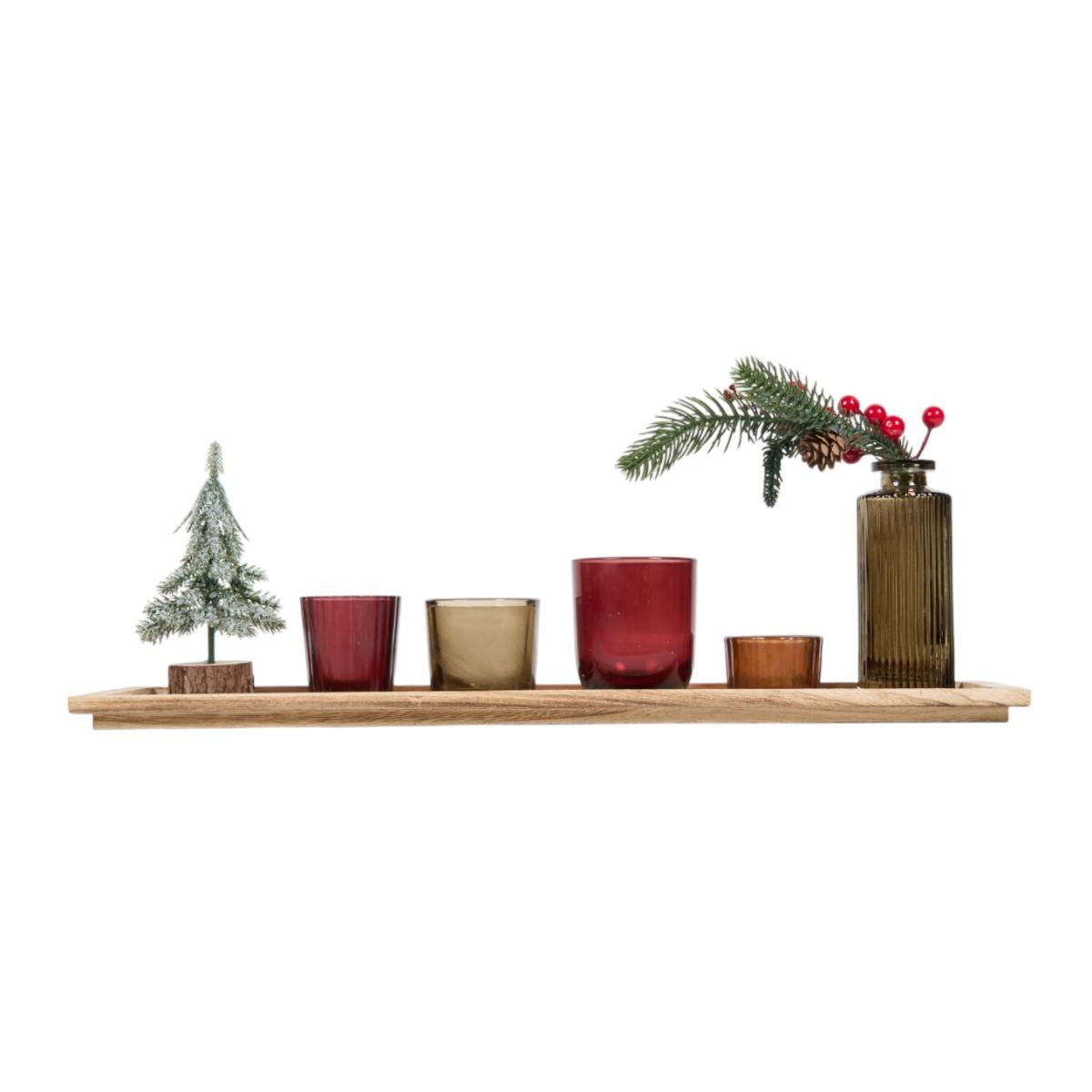 Bring the essence of the forest into your home with this Forest Festive Candle Tray. Featuring tinted candle holders on a sturdy wooden base, this decorative piece is perfect for adding a warm, rustic charm to your space. It is ideal as a festive centrepiece or a year-round accent on tables and shelves.