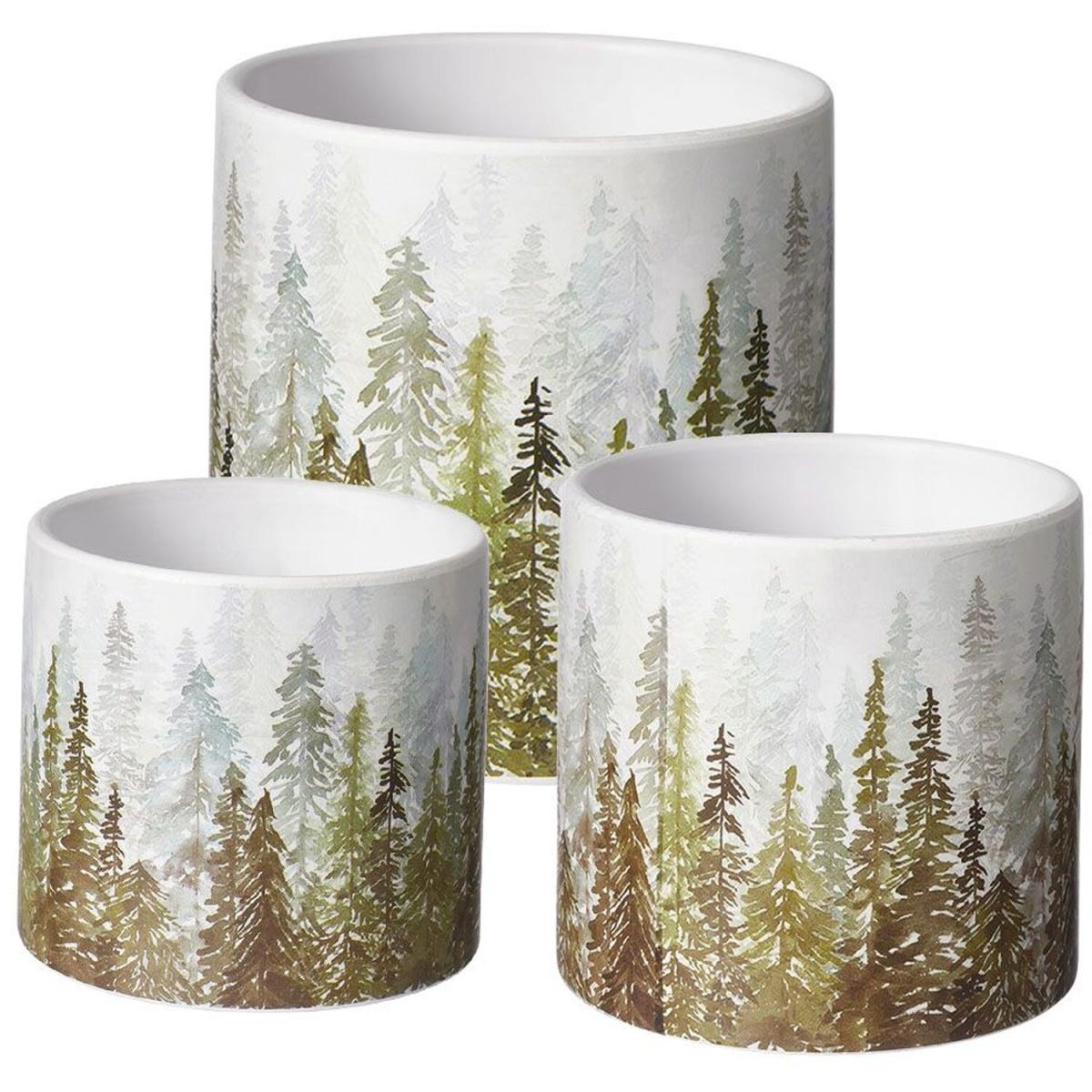 Forest Fir Tree Print Indoor Ceramic Pot - Multicolour / Small