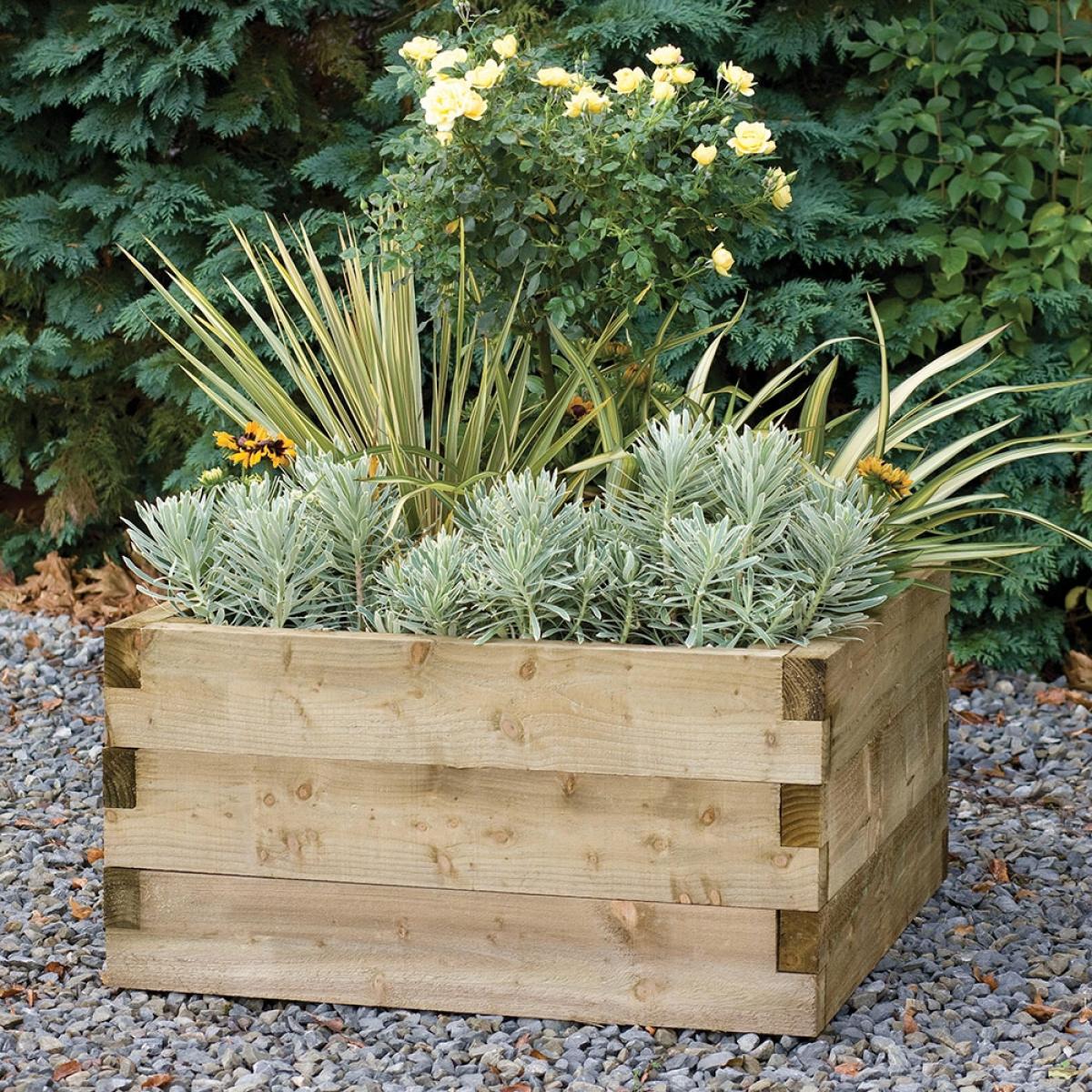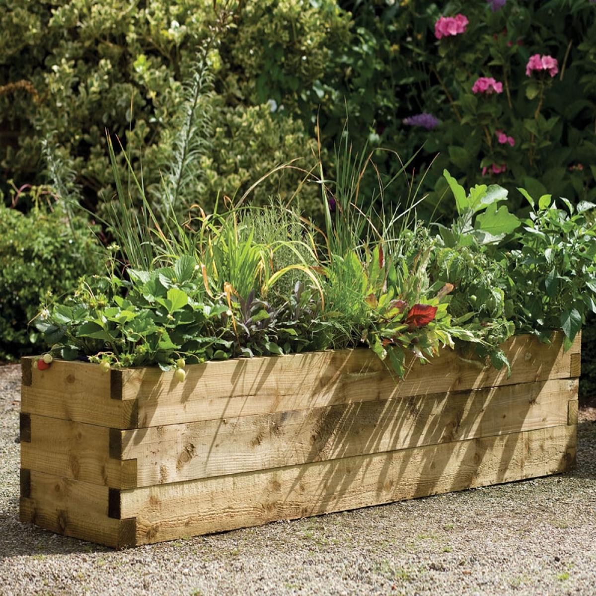 Transform any unused spot with the gorgeous Forest Garden Caledonian Planters. Available in 3 sizes, grow root vegetables and herbs to liven up homemade meals or opt for a more colourful display and plant a selection of flowers and shrubs. The raised planter design makes tending to your plants easier on your back, plus crops are better protected from unwanted garden pests! Made from solid, responsibly sourced timber, the chunky sleeper design will give your garden a contemporary look and feel. Pressure treated to protect against rot, eliminating annual re-treatments, leave the natural wood unpainted or style in pastel shades to brighten up your outside space! With other matching planters available, choose a flower bed to suit your needs!.