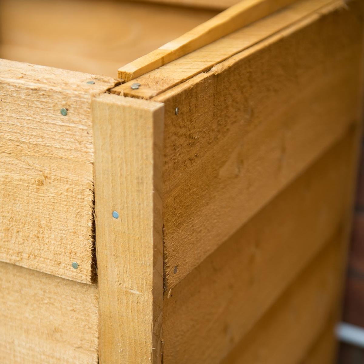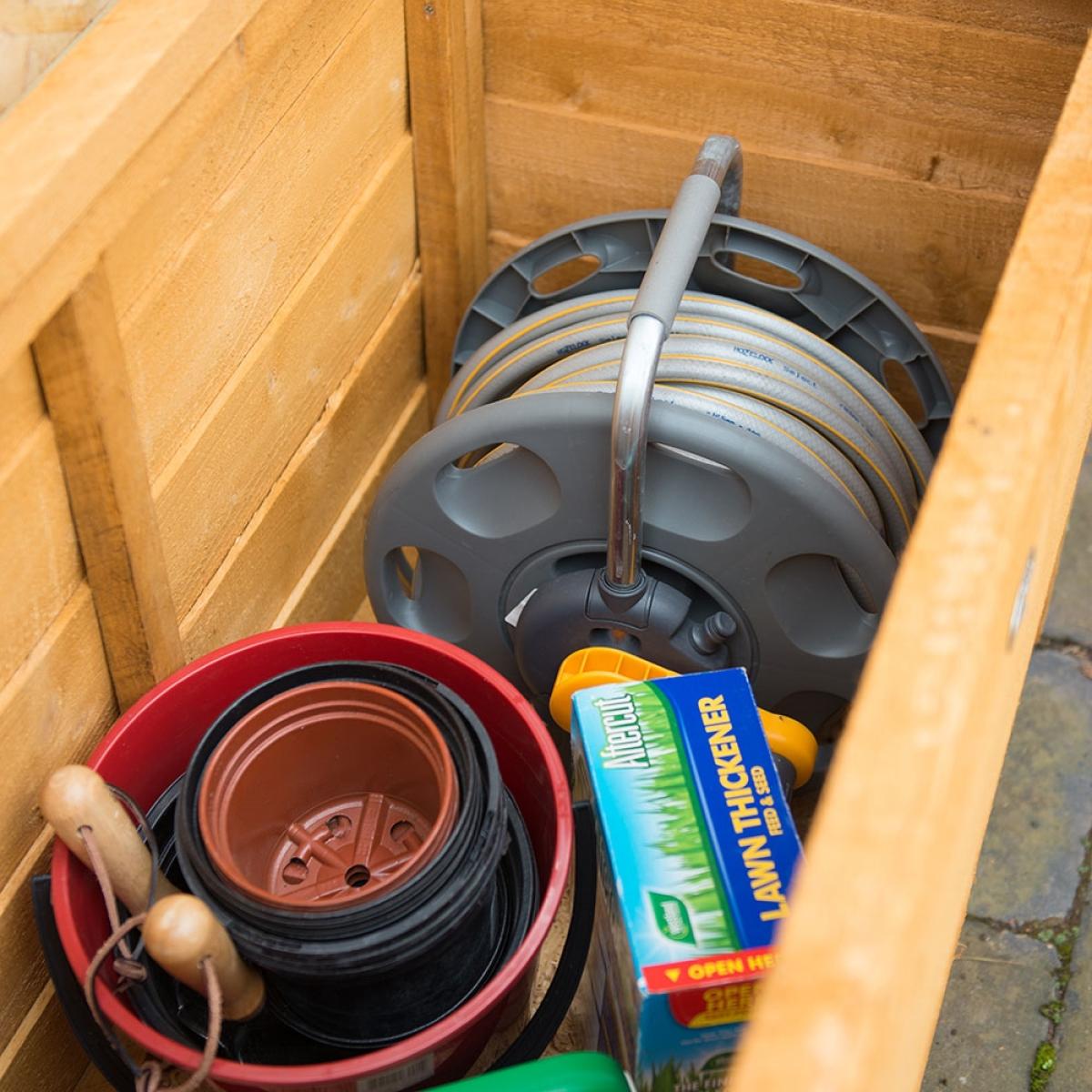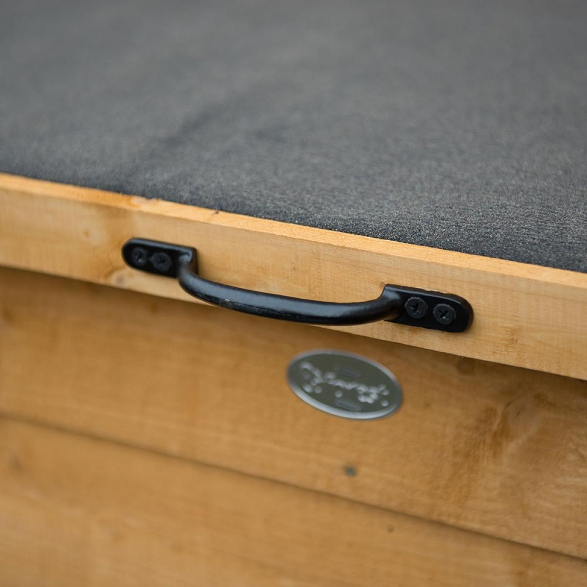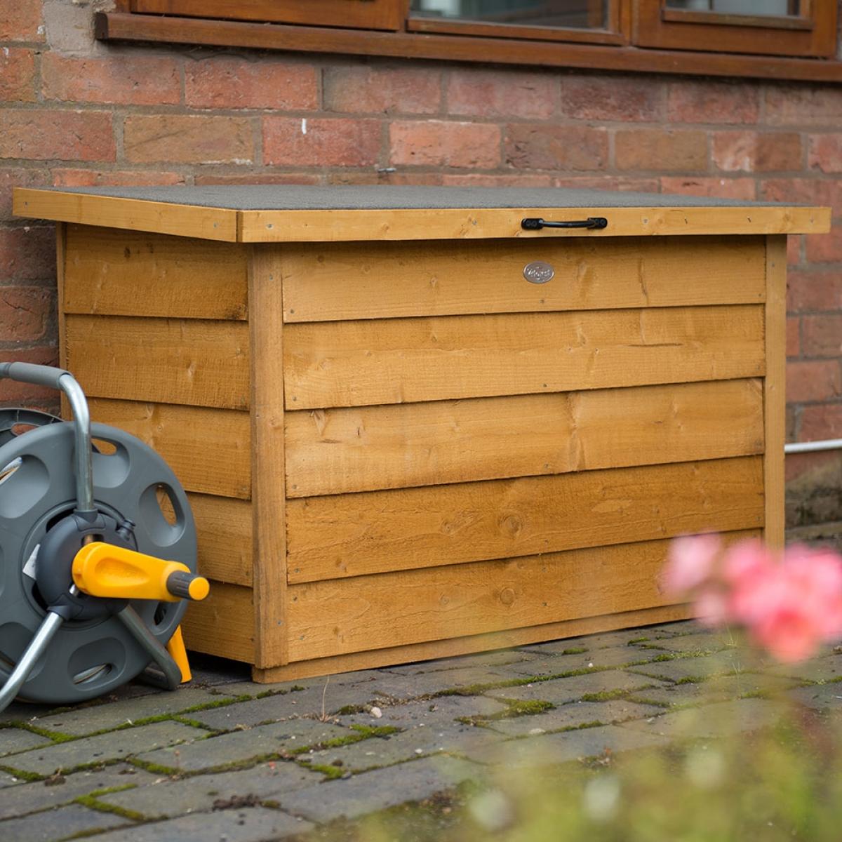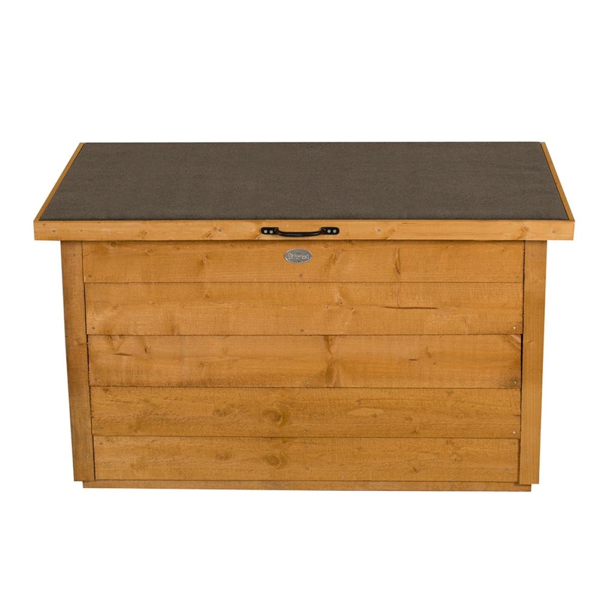 In need of some outdoor storage? Tidy away muddy boots, garden tools or kids toys inside the Forest Garden Dip Treated Storage Box. Perfect out on the patio, by the back door or even in the garage; the storage box has a small footprint making it an inoffensive addition. With 300. L capacity, there's still plenty of space for your outdoor essentials! Featuring a lightweight lift-up lid with handle, you could even use it as a parcel drop box? Mounted onto pressure treated bearers, your chosen contents will be kept dry and protected. Built to last and made from high quality timber, the traditional overlapping panels have been dip treated to protect against rot with a 10 year guarantee. Available in other finishes, select the garden store to suit your needs!.
