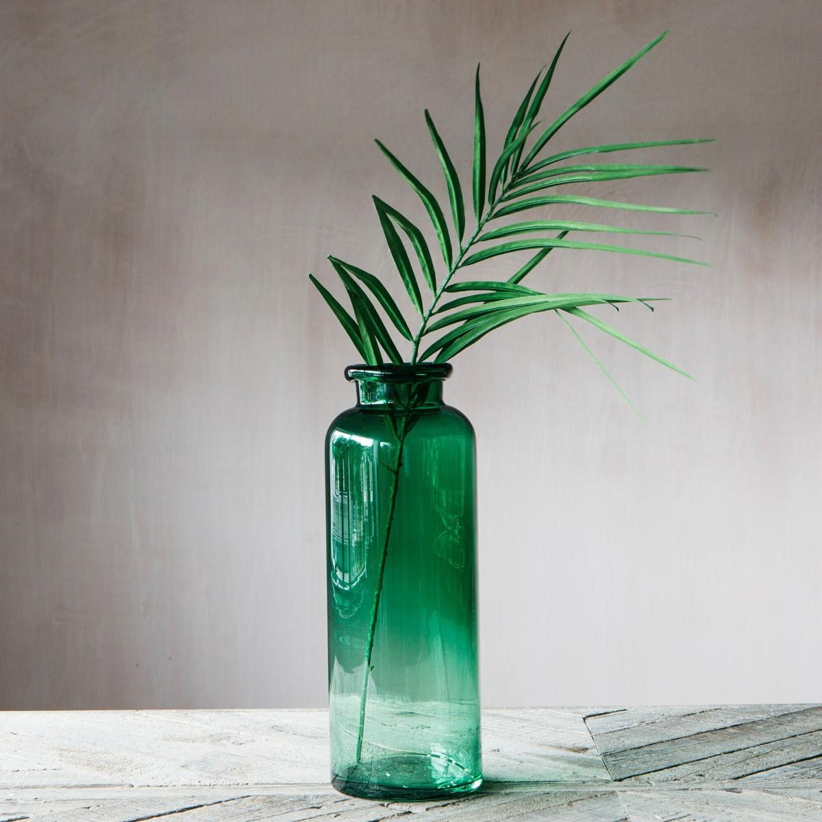 Fill this tall bottle vase made of soda lime glass with brightly coloured flowers to compliment the forest green hue.