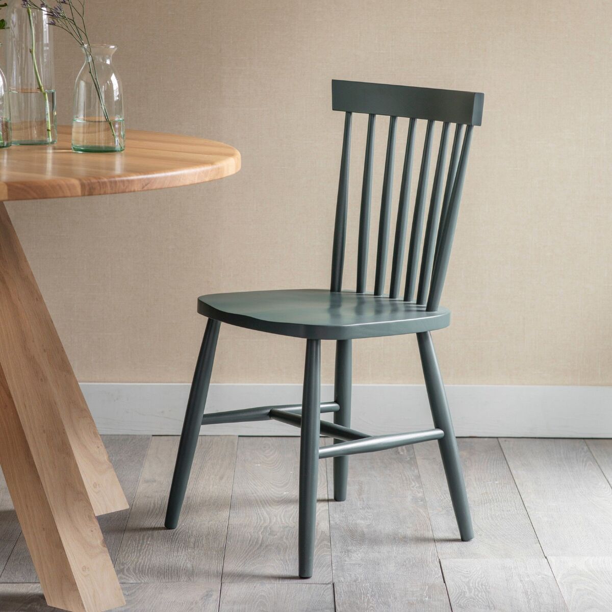 Filled with farmhouse charm this spindle back chair is crafted from beech and finished in a pine green.