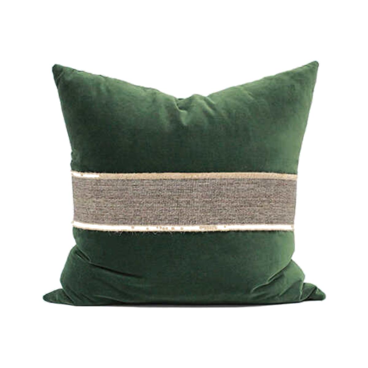 Forest Green Velvet Pillow With Jute Broadway Cocoa Trim One Size Smithhönig