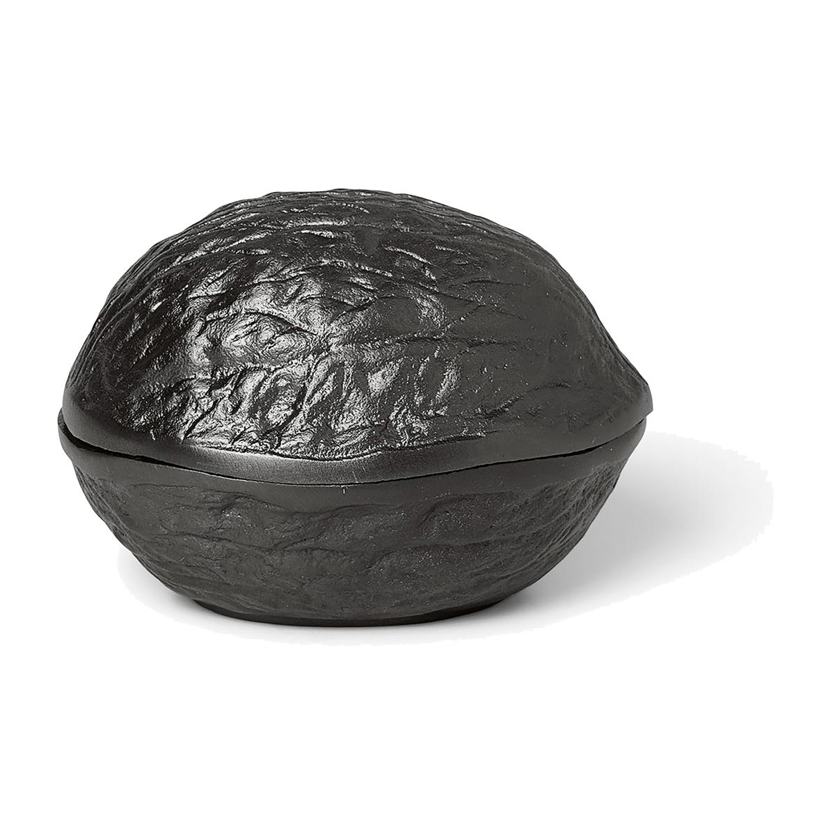 Forest nut box nutshell with lid 7. 5 cm from Ferm Living is made of metal in an eye-catching shape of a nut. When the bowl is opened it offers storage for keys, hair clips or other small items. Use this nutshell with other pieces from the Forest series for a close-to-nature aesthetic in your home.