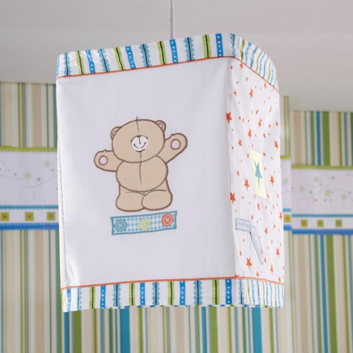 Introducing the Forever Friends Little Star Fabric Lantern, a delightful choice, with its fresh white backdrop, it sets the stage for a vibrant palette featuring shades of lime green, aquamarine, and tangerine. Text embroideries in lively colors, along with striped trims, evoking a sense of playful warmth The inclusion of snugly and soft Forever Friends bear appliques adds an indulgent touch, perfect for cozy moments with your little one. This lantern isn't just a decorative piece it's a warm invitation to share the sweetest hugs in the nursery. Explore our range of matching accessories, coordinated blankets, and sheets to complete the ensemble.