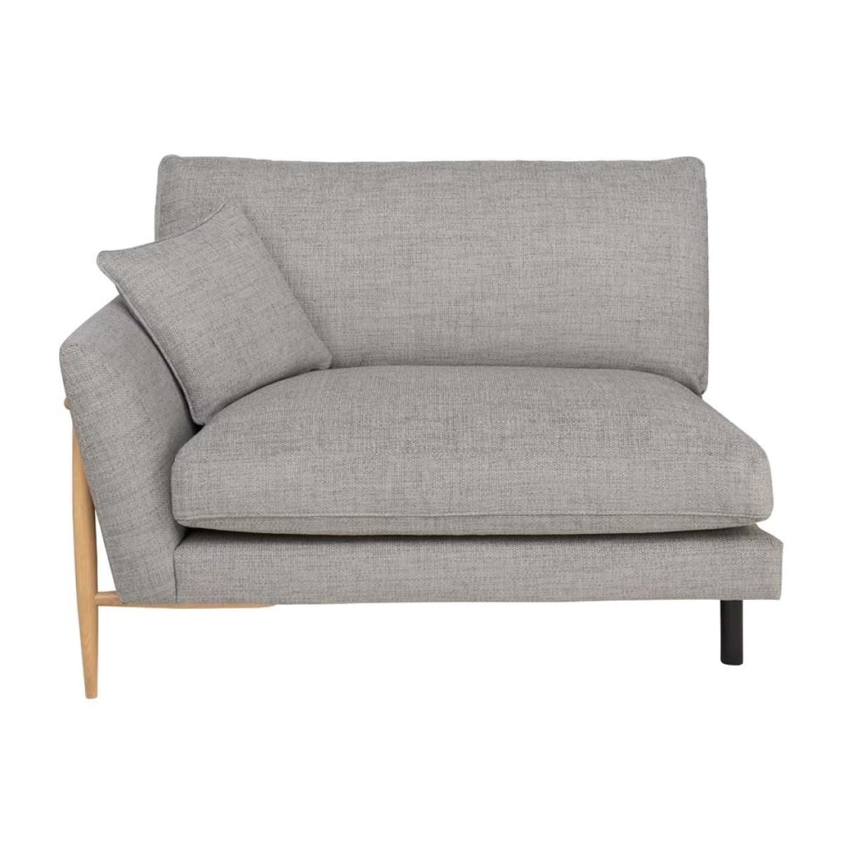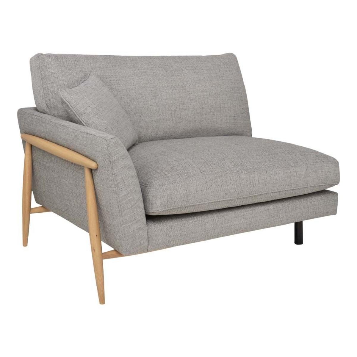 A left hand facing snuggler arm unit for the Forli sectional sofa. The Forli sofa collection is designed with the compact home environment in mind. Slim profiles, contemporary textured and plush fabrics create a dramatic backdrop for the beautifully turned solid oak leg details. The Chaise end is a key piece for the more contemporary driven consumer, sitting perfectly within an open plan space.
