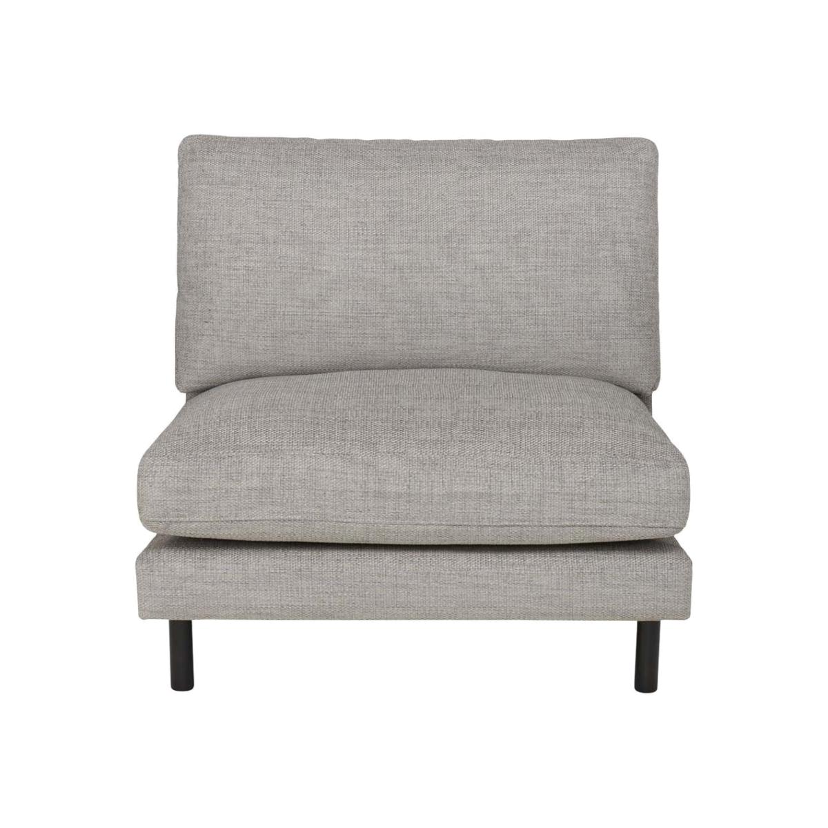Single snuggler seat with no arms unit for the Forli sectional sofa. The Forli sofa collection is designed with the compact home environment in mind. Slim profiles, contemporary textured and plush fabrics create a dramatic backdrop for the beautifully turned solid oak leg details. The Chaise end is a key piece for the more contemporary driven consumer, sitting perfectly within an open plan space.