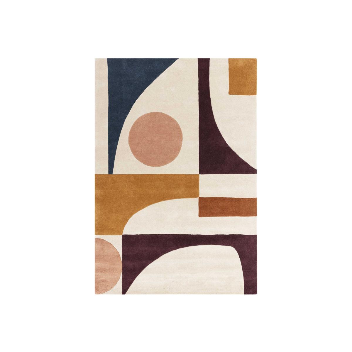 The Formation Multicoloured Geometric 120 x 170cm Rug will instantly refresh your space with its charismatic multicoloured geometric design. Boasting bold shapes in warm tones of pink, plum, blue, and amber, creating a striking centrepiece to any room it is placed in. Crafted from 100% natural hand-tufted wool which offers a luxurious underfoot experience and is highly durable, making it perfect for high-traffic areas. Create immediate warmth, comfort, and style to your home with this versatile and stylish rug.
