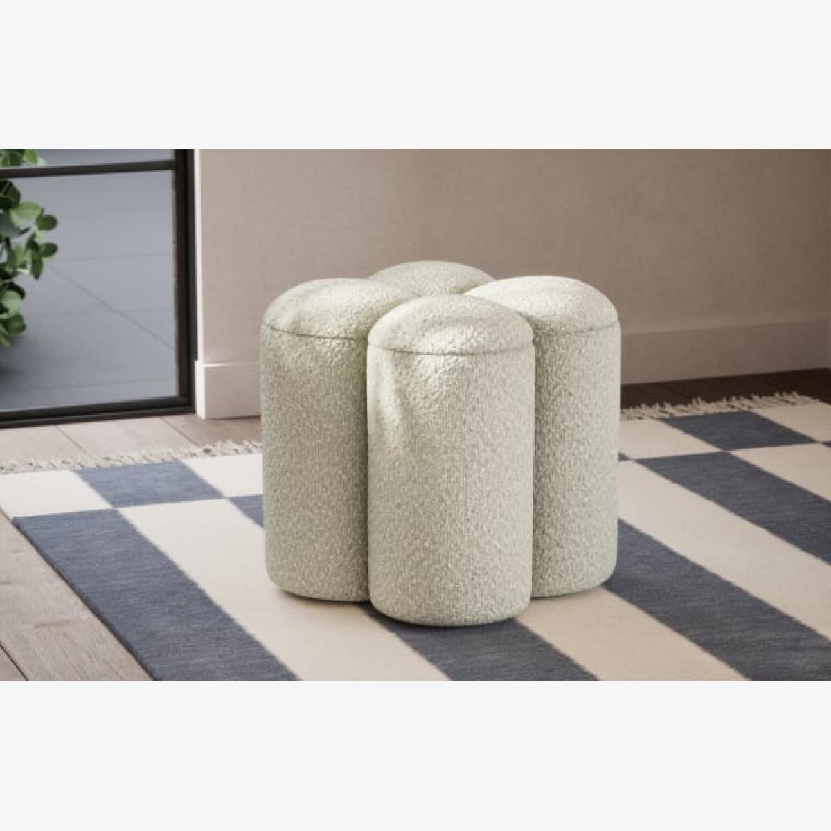 The Form Footstool is a versatile and stylish addition to any space. Upholstered in soft, textured boucle fabric, its rounded shape offers both comfort and modern appeal.