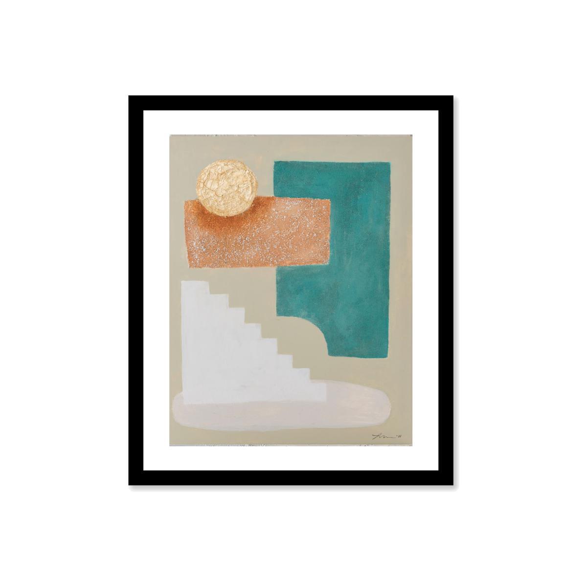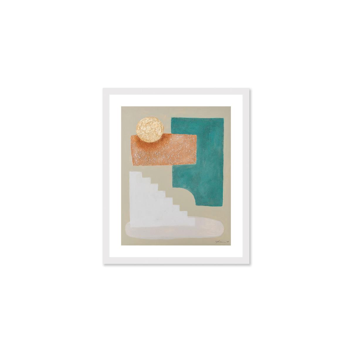 This 50cm x 60cm framed fine art print is part of Lana Matsuyama's Formscape Series. The Series encourages the viewer to move their focus between the formal features of fine art in the artwork: texture, form, colour, balance and proportion. Inspired by patterns in nature, ever-changing urban landscapes and Japanese influences such as wabi-sabi, Lana creates art using a practise of layering, adjusting and building. The combination of teal, tan, and other neutral tones make this artwork a great piece for spaces with a relatively minimalist style, and would sit beautifully in an open-plan kitchen or living space. The limited edition print will be delivered to you hand framed, ready to hang in your home, and with a signed, certificate of authenticity. You will also receive details about the artist and their inspiration behind your new artwork providing the perfect conversation starter with family and friends.