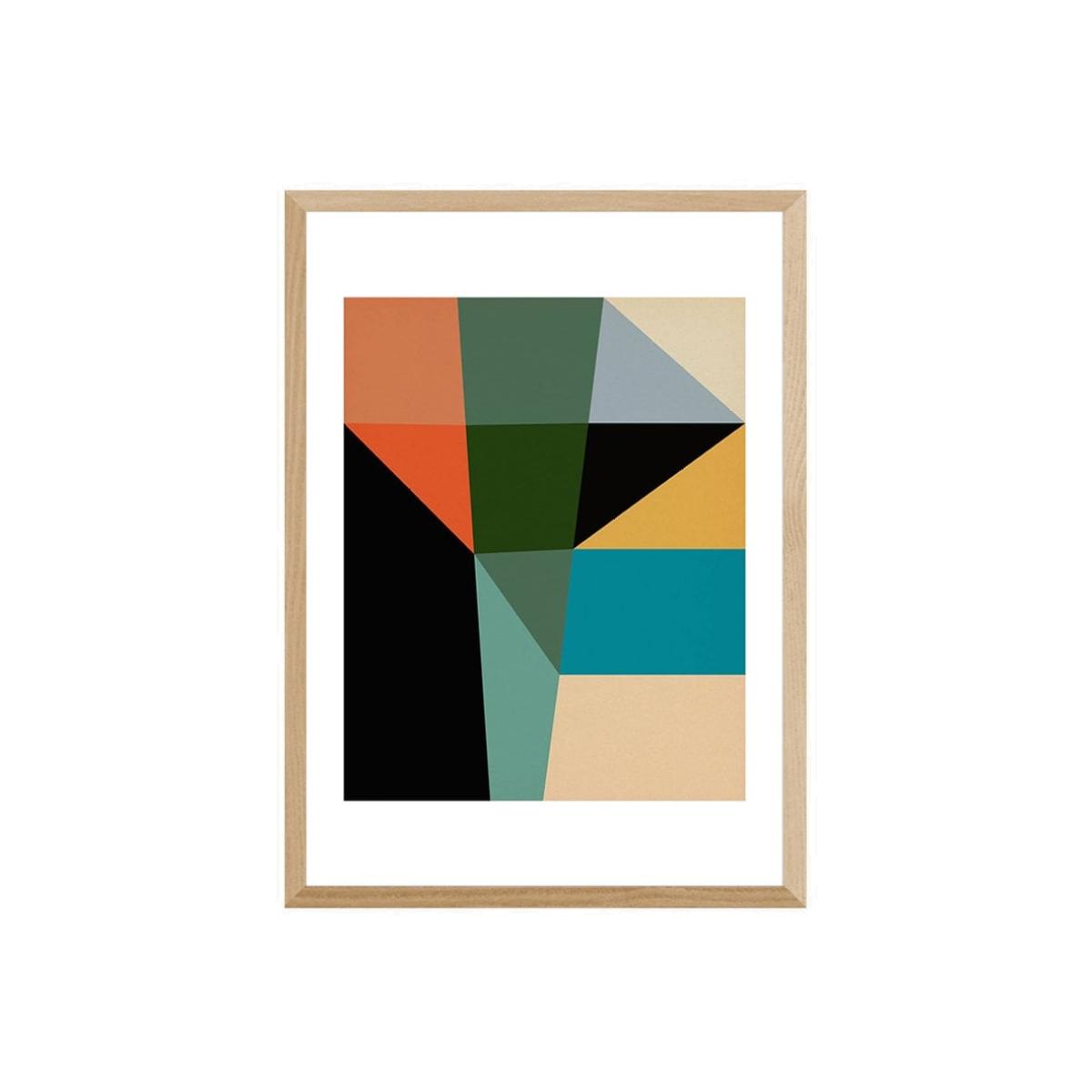 I love this geometric print in oak for its versatility and contemporary appeal. It works particularly well in modern and minimalist interiors, where clean lines and structured shapes complement the space. The colour palette is warm yet muted, making it a great piece for adding visual interest without overpowering other design elements. Practical styling tips include pairing it with neutral-toned furnishings or using it as a statement piece above a plain sideboard or sofa. It also lends itself well to grouped displays with other artworks or decorative objects that share similar geometric shapes or colour tones, creating a cohesive visual effect.
