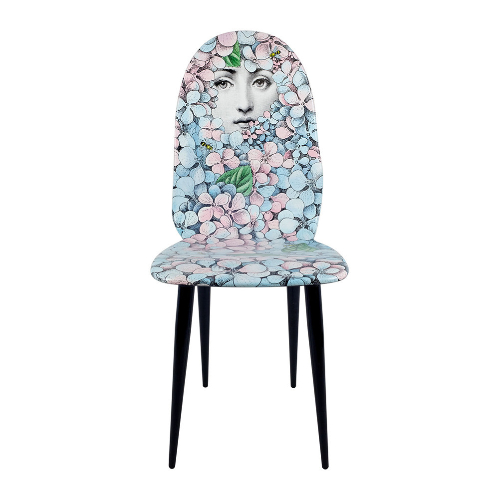 Bring iconic design to the dining room with this Linangea chair from Fornasetti. Handcrafted from lacquered wood, it depicts the face of Lina Cavalieri hiding amongst pastel coloured blooms, the same flowers which surrounded Casa Fornasetti for 60 years. A reinvention by Barnaba Fornasetti, this striking chair is a welcome addition to any home.