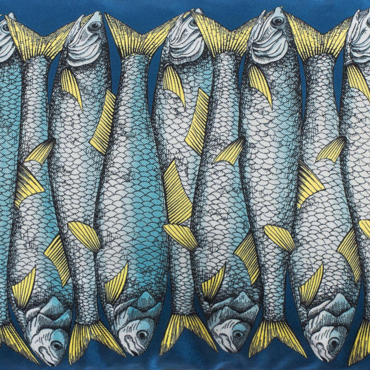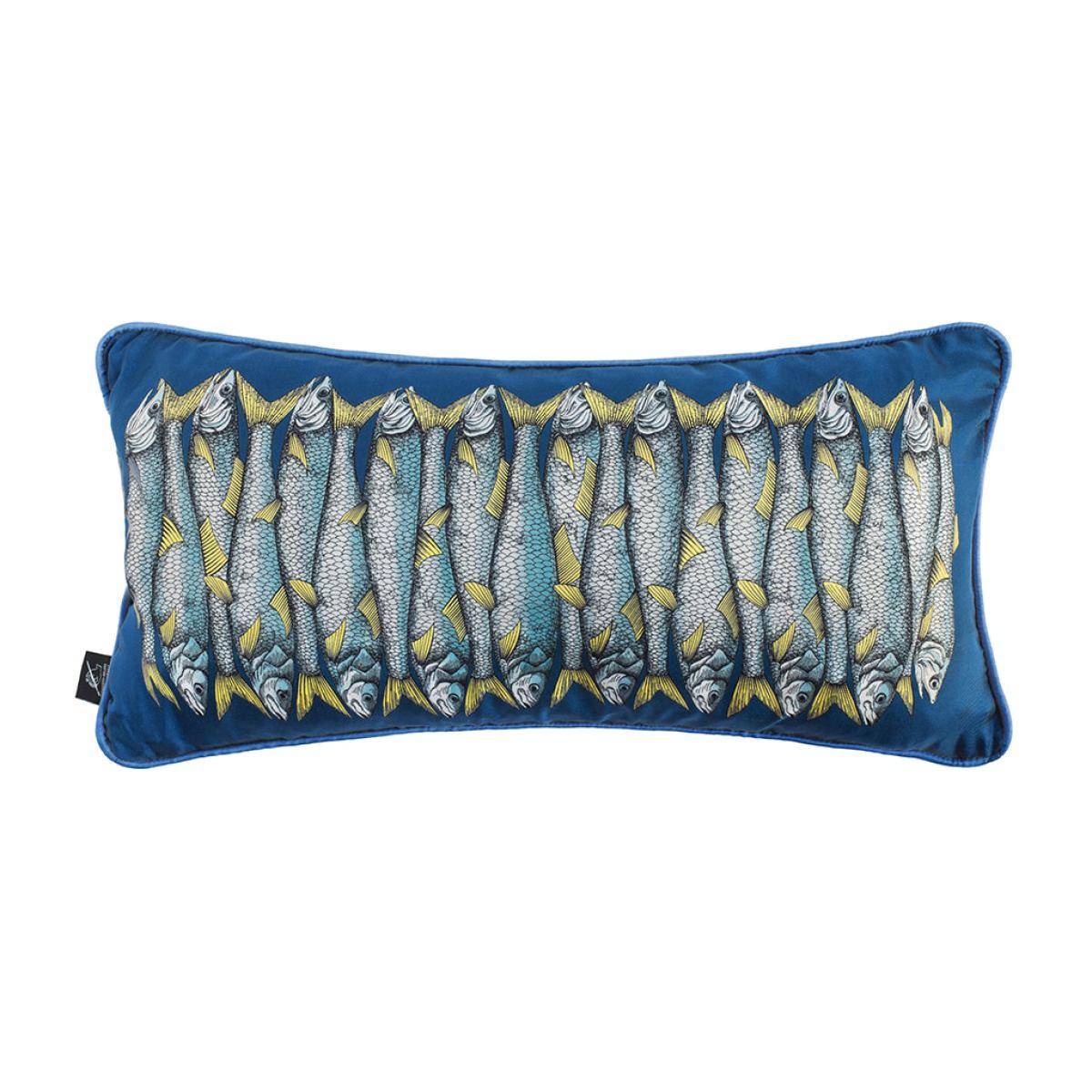 Fornasetti - Sardine Silk Reversible Cushion - 50x25cm - Blue