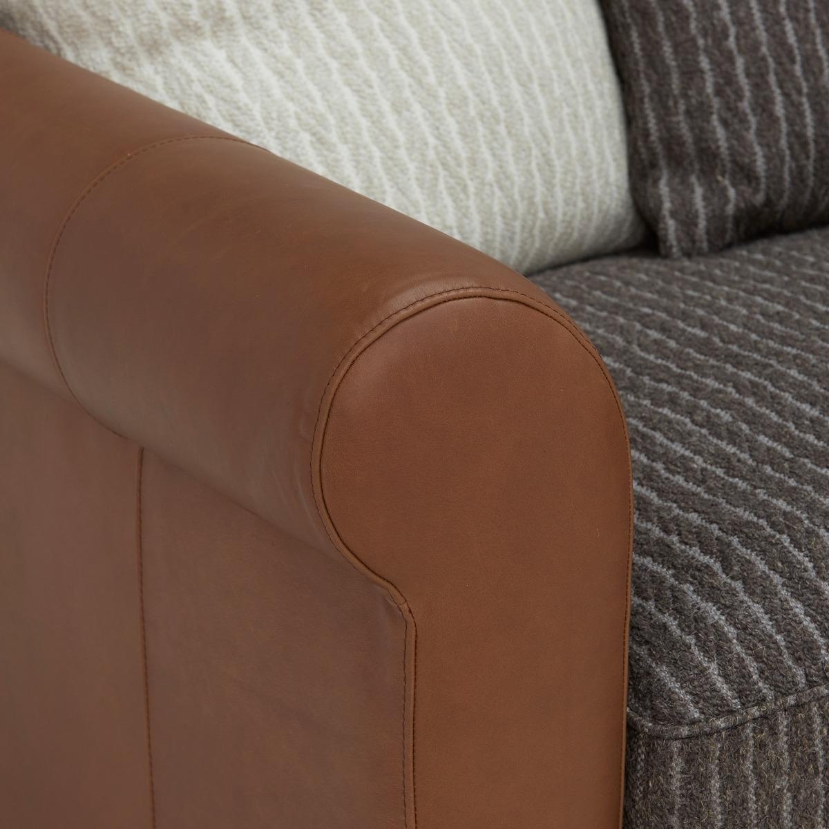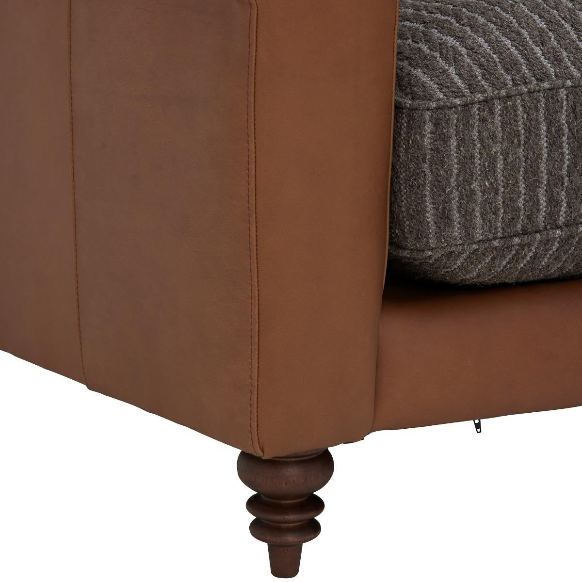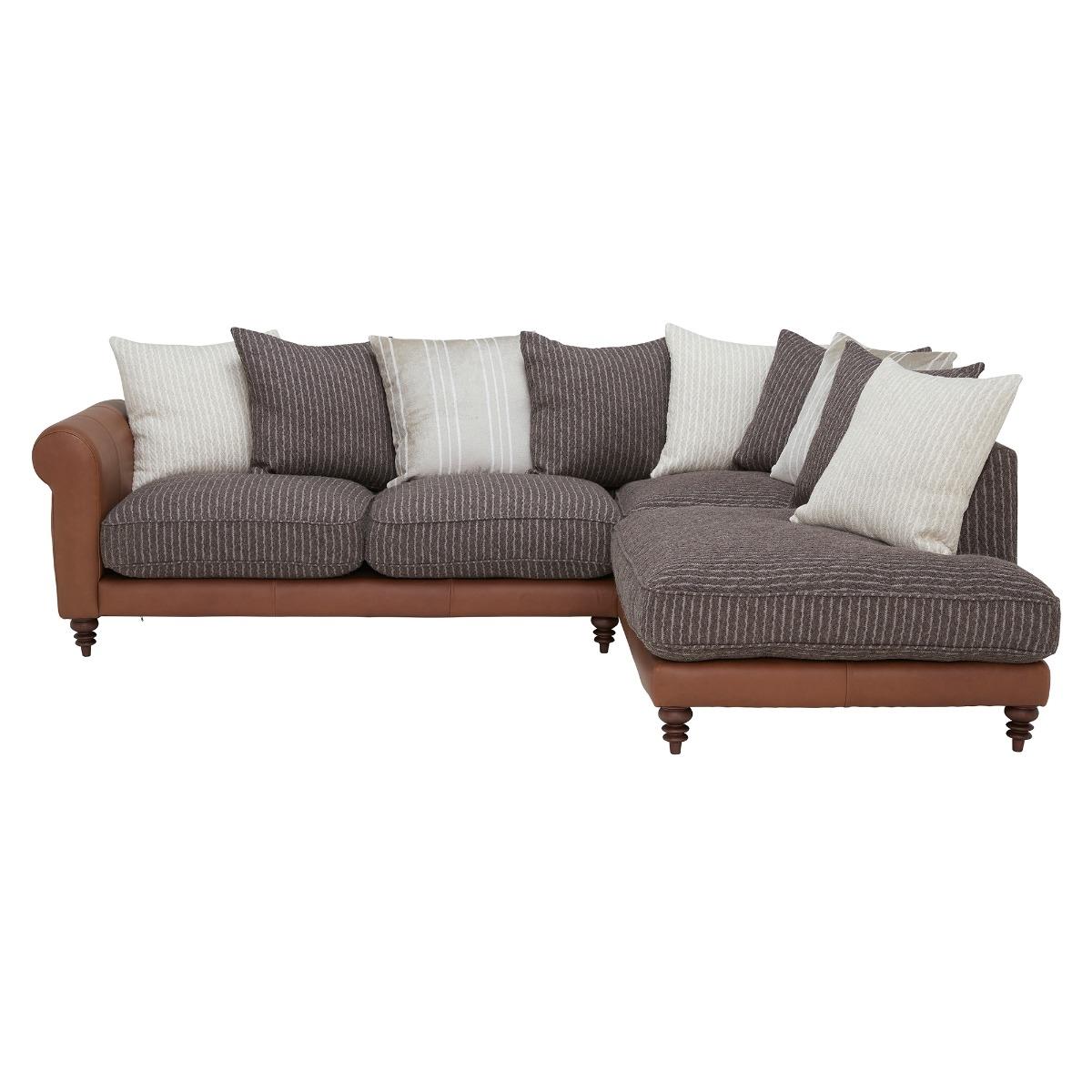Design. Oozing warmth and character, the Forrest 3 Corner Chaise is a beautiful asset to any living space. Crafted from eco leather and knit natural fabric in different neutral tones with vertical striped design, it adds texture and the use of pattern to your room effortlessly. Filled with a foam core and. Fibre. Wrap with. Featherback. Cushions,. It also. Provides. The comfort and support your body deserves after a long day. Explore the whole Forrest range to complete the look.