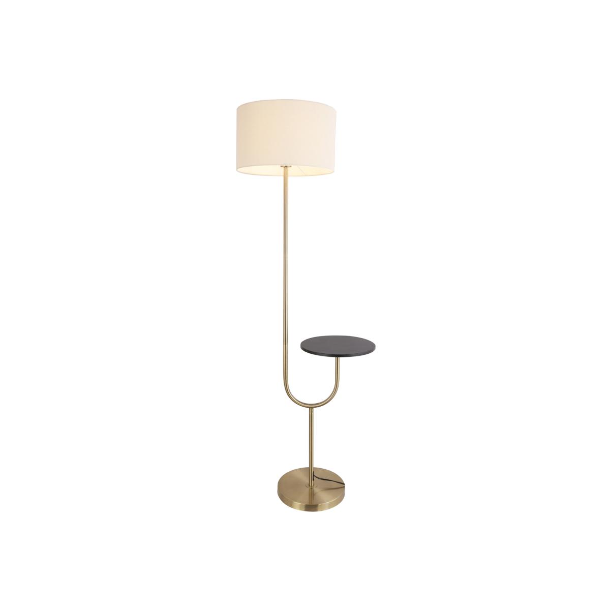 Enhance your space with the uniquely designed Forrest Floor Lamp with Table. Combining elegance and functionality, this lamp comes with a small table that doubles as a holder, perfect for placing decorative items or your cup of coffee. Ideal by your sofa or reading nook, it is sure to infuse any space with a hint of sophistication and style. The fabric shade emits warm and inviting illumination, making it even more desirable and enchanting.