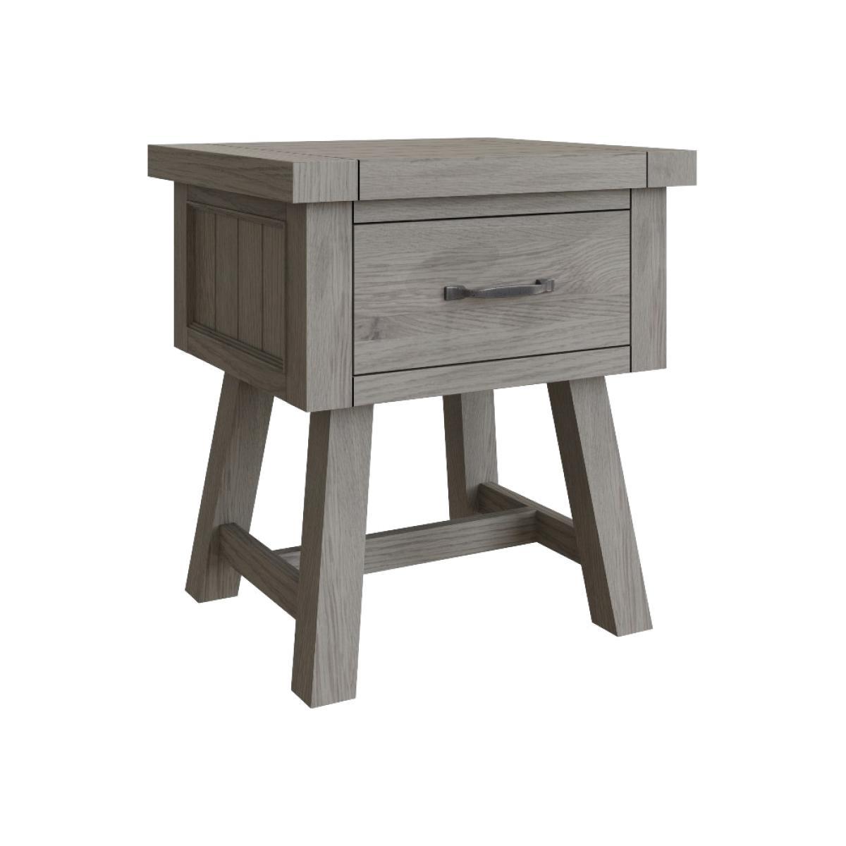 Treat your home to the bold shapes of the Forrest collection. These stylish pieces are made from a unique mix of durable materials with chunky legs, a solid frame and a stunning panelled top - designed to last you a lifetime. Original modern lamps look spectacular on top. Constructed with oak, oak veneers, ply, MDF and love. An eye-catching grey oak finish. Pewter effect bar handle on the dovetailed drawer. Chunky legs splayed at a contemporary angle