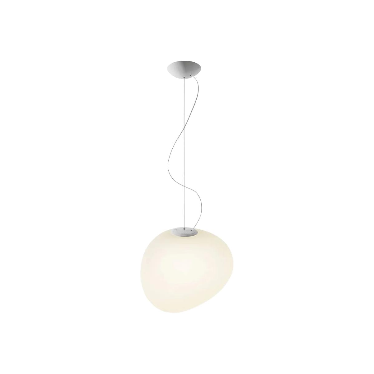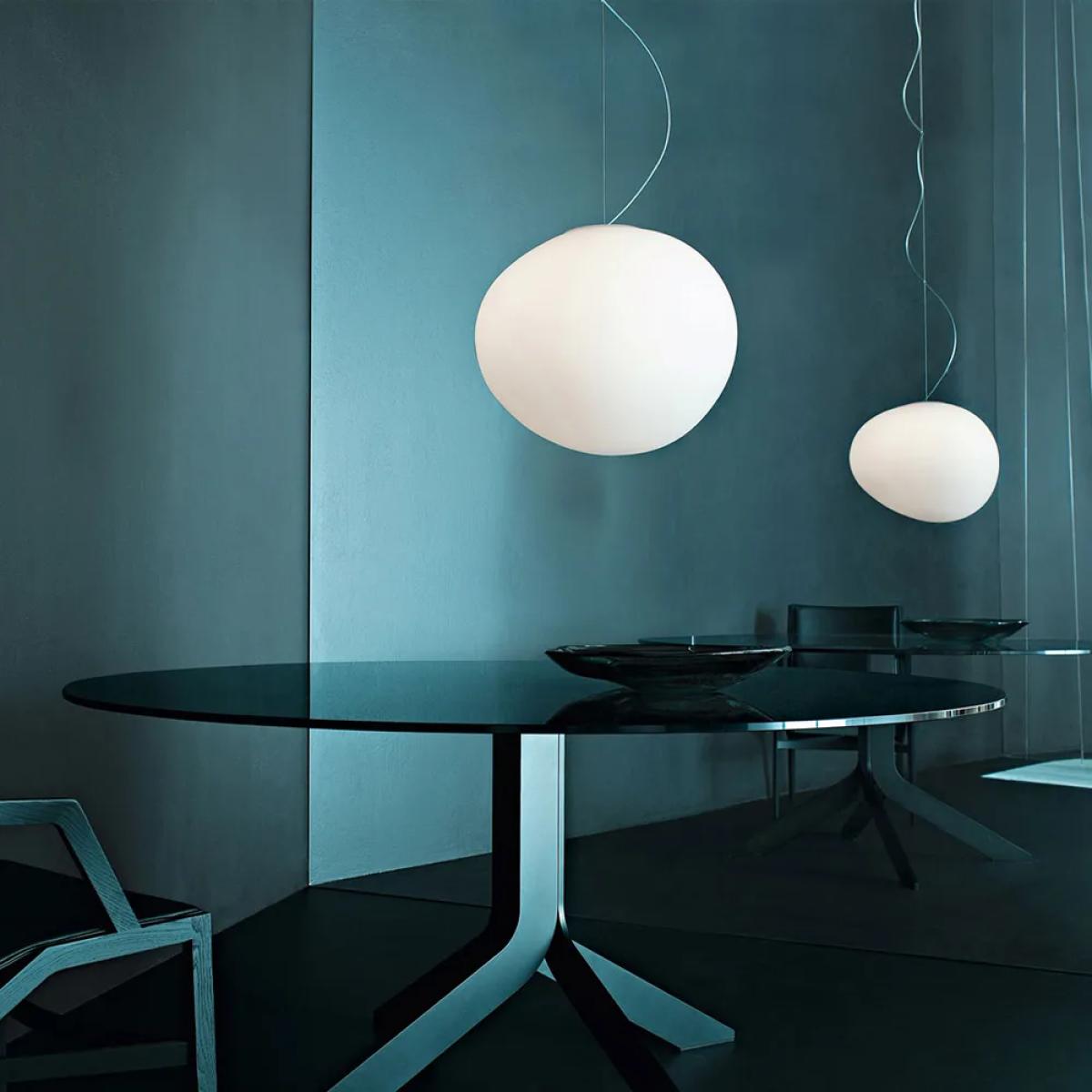 Gregg media pendant from Foscarini is an elegant ceiling pendant in frosted, free-blown glass designed by Ludovica and Roberto Palomba. The medium-sized glass shade has an organic, rounded form that suits both dining areas and living rooms, casting a soft, glare-free light. The material and craftsmanship give each lamp a unique character, perfect over a dining table or grouped for a stylish, welcoming space. Easy to integrate into Scandinavian interiors where form and function meet.