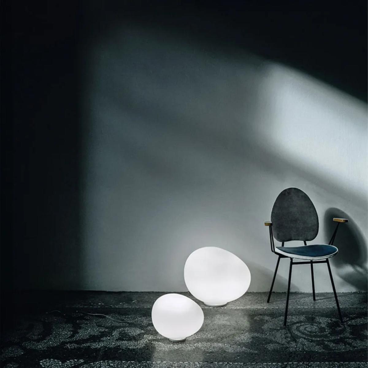 Gregg midi table lamp from Foscarini is a medium-sized table lamp with soft, organic shapes designed by Ludovica and Roberto Palomba. The lamp features a supple glass that diffuses a warm, glare-free light and works perfectly on a side table, dresser, or nightstand. Its neat size makes it easy to place in living rooms and bedrooms, providing both ambient lighting and reading light. For a harmonious look, it can be combined with other lamps in the Gregg series.
