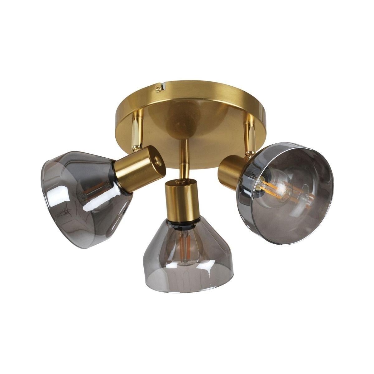 Amazing 3 Light Spot Plate Light. Decorative 3 light spot plate with brushed brass finish. Perfect for kitchens and dining rooms, the Fosco will update any living space with a stunning design. Paired with smoked glass shades, this light gives off an amazing warm glow throughout any space. Choose from either our warm white or cool white E14 bulbs.