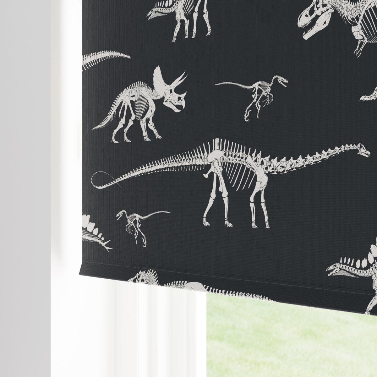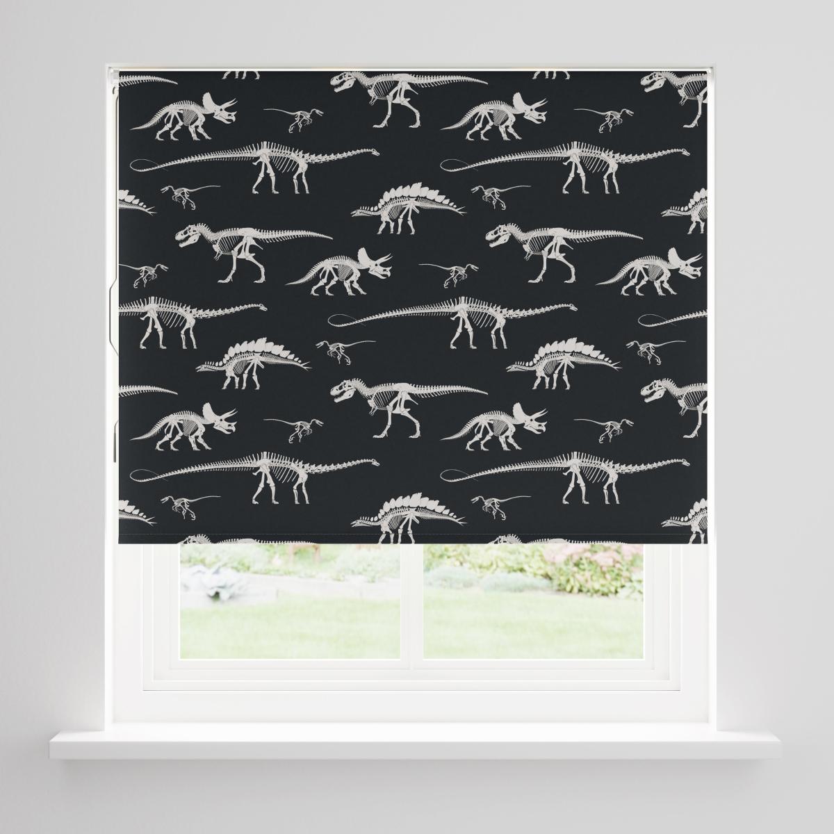**In collaboration with the Natural History Museum*** Natural History Museum Age of Dinosaurs design* Cordless blackout roller blind* All fixings included If you are a dinosaur enthusiast, you will love our Natural History Museum Fossil Forager roller blind depicting a collection of iconic dinosaur skeletons, such as Triceratops, Tyrannosaurus rex, and Diplodocus to name but a few! This cordless roller blind features a blackout finish to reduce external light adding privacy to your or your kids' room. The fabric is made from recycled polyester and all fixings are included. Available in a variety of sizes.**Natural History Museum x Dunelm**We’ve come together to create some extra special designs inspired by the Museum and its enormous, astonishing and mind-blowing dinosaur and oceanic collections! We’re on a mission to celebrate the wonder of nature so every piece in this collection has been designed to utilise our resources in the best possible way, to be respectful of the natural world and help to protect its future. © The Trustees of the Natural History Museum, London 2024. All Rights Reserved.