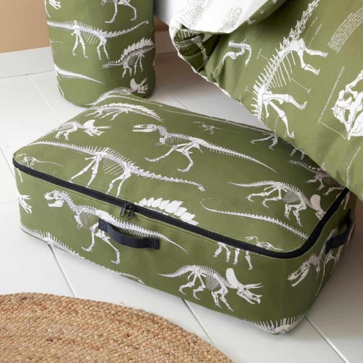 **In collaboration with the Natural History Museum** * Fossil Forager dinosaur-themed design * Zip fastening keeps contents secure * Matching items available Keep clutter out of sight with the Fossil Forager underbed storage bag, designed in collaboration with the Natural History Museum. Made from 100% cotton canvas, it’s lightweight, durable and perfect for neatly storing toys, clothes or spare bedding. The fossil-inspired design brings a fun, prehistoric touch to any room. Built-in handles make it easy to pull out, while the zip fastening keeps everything neatly tucked away. Fits under most beds and low furniture. Pair it with matching items from the collection for a coordinated space.**Natural History Museum x Dunelm**Since the name ‘Dinosauria’ was first coined back in 1842 by the founder of the Natural History Museum, Sir Richard Owen, there has been a public fascination with these awe-inspiring creatures. And where better to learn more about these prehistoric beasts than at the Museum’s Dinosaur Gallery that houses the world’s most diverse collection of dinosaur fossils including the most complete Stegosaurus in the world and the jawbone of the first T. rex ever found. This collection celebrates dinosaurs from the different time periods spanning the Mesozoic Era, celebrating their enduring appeal to kids and adults alike. © The Trustees of the Natural History Museum, London 2025. All Rights Reserved.