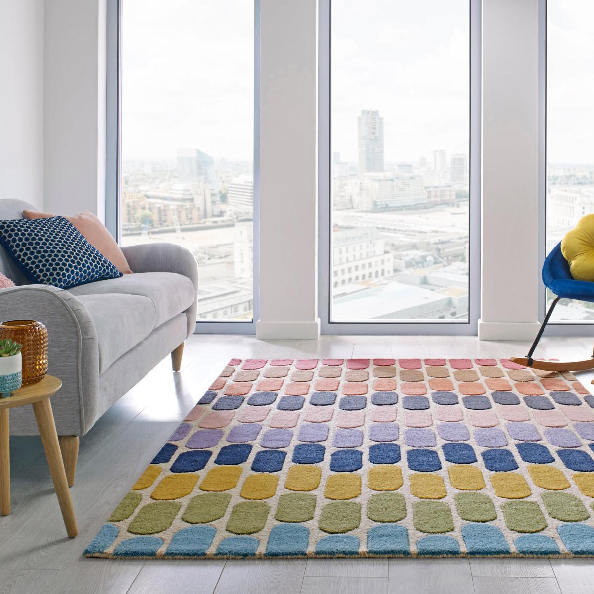 Hand-crafted by skilled rug artisans using the cut and loop effect, the Fossil rug uses texture and colour to define its space in your home. A mix of bright and bold shades paired with the high-low effect of the pile creates a warm, subtle statement to sink your feet into. Crafted in 100% wool to maximise warmth and sound insulation, Fossil is made for modern living. We love using the Bright Fossil rug to define playful yet cosy living spaces. Don't forget to buy our handy anti-slip mat,. Here,. Available in a range of sizes. This is a dense hand-made rug. When opening, re-roll your rug pile out and leave in a warm room for 24 hours before putting in place, this will help to reduce wrinkles and curling from packing. Do not pull any loose threads, please cut them carefully with scissors to remove. Avoid prolonged exposure to direct sunlight as this may cause fading of the colour. Turn your rug regularly to ensure even wear and to reduce pressure marks from furniture. Wool fibres may shed when new and during use, this is a characteristic of this product and is not a defect and should reduce with normal use and regular vacuuming. Before using any cleaning products on your rug, test on an inconspicuous area first to ensure it does not affect the colour. Clean spills immediately by blotting with a clean dry white cloth - do not rub as this may stain the fibres. Vacuum your rug regularly to remove everyday dirt, we recommend the use of a suction type vacuum cleaner as a rotating vacuum brush can cause damage to the pile surface. We recommend the use of an anti-slip mat beneath your rug to prevent it from slipping and sliding out of place. Latex is used on the back of this rug. Please do not leave babies or young children unsupervised on this rug.
