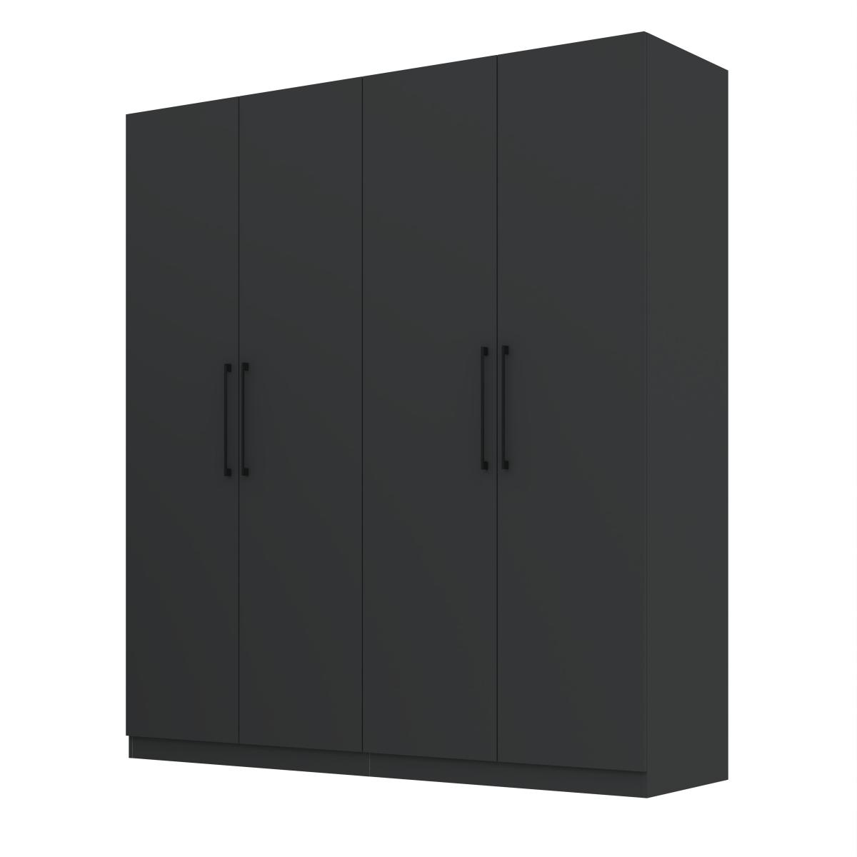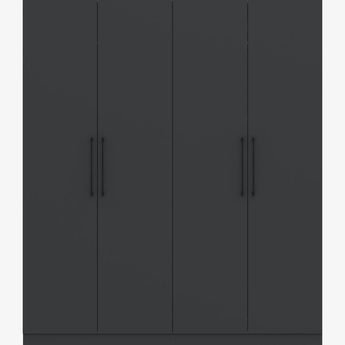 * Spacious extra-large wardrobe * Great for flexible storage * Modern metal bar handles * Options for mirrors/no mirrors * Available in oak effect or anthracite grey colourways * Adjustable shelves and hanging rails Keep everything organised and tidy with ease with this Foster 4 door wardrobe. Designed in a contemporary style, with a choice of oak effect or dark grey anthracite finishes and modern metal bar handles, this wardrobe does not compromise on looks whilst providing spacious and flexible storage. The shelves and hanging rails are adjustable to suit your needs - the perfect addition to a modern bedroom.