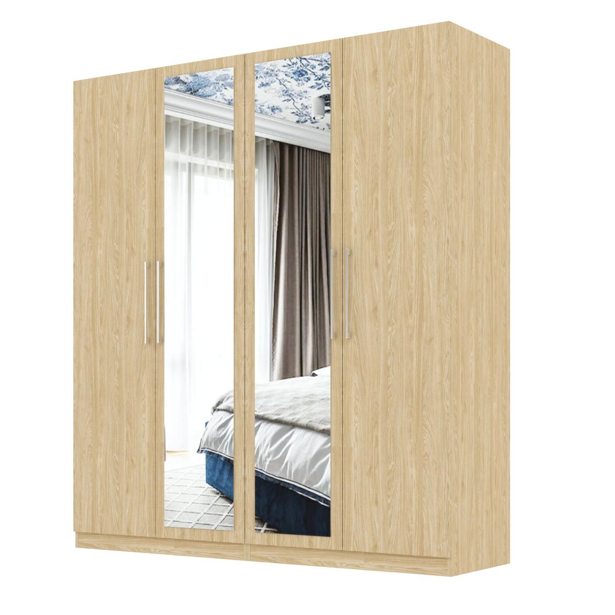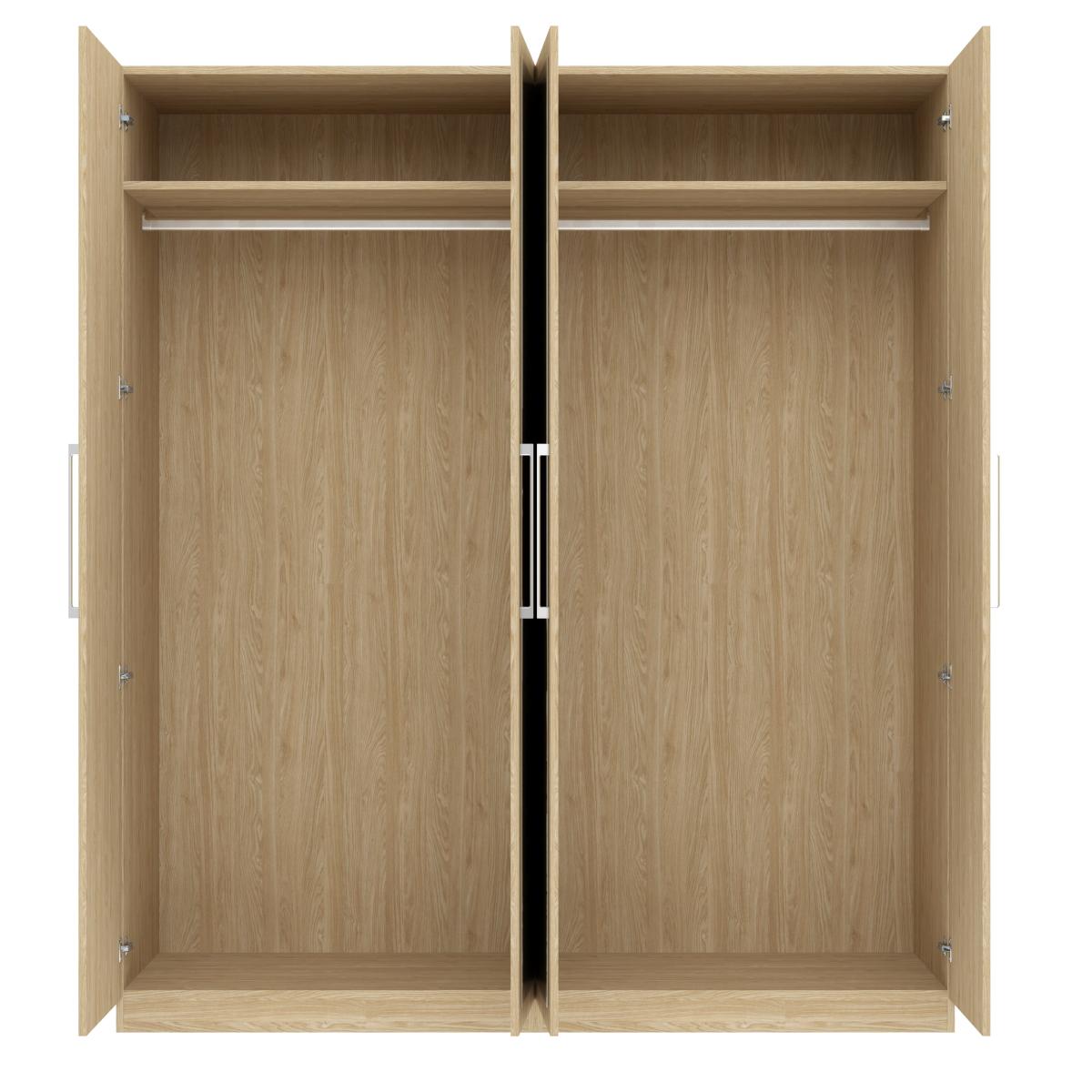 * Spacious extra-large wardrobe * Great for flexible storage * Modern metal bar handles * Options for mirrors/no mirrors * Available in oak effect or anthracite grey colourways * Adjustable shelves and hanging rails Keep everything organised and tidy with ease with this Foster 4 door wardrobe. Designed in a contemporary style, with a choice of oak effect or dark grey anthracite finishes and modern metal bar handles, this wardrobe does not compromise on looks whilst providing spacious and flexible storage. The shelves and hanging rails are adjustable to suit your needs - the perfect addition to a modern bedroom.